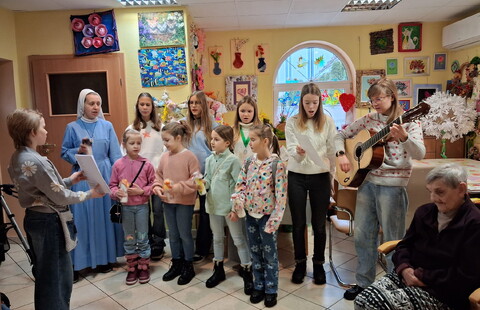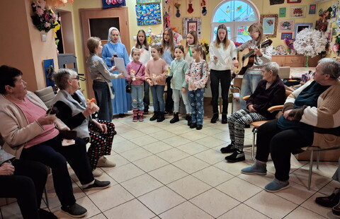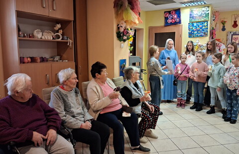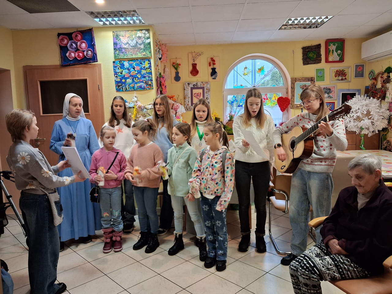 Dziewczęta z Wspólnoty Dzieci Maryi z Parafii Wspomożenia Wiernych i Parafii św. Jacka, przyszły do naszych Mieszkańców, aby wspólnie pokolędować. Radości było wiele. Najpierw dziewczęta śpiewały kolędy, a później Mieszkańcy cieszyli się, że mogą Ich nauczyć niektórych kolęd. Dziękujemy za wspólnie spędzony czas.