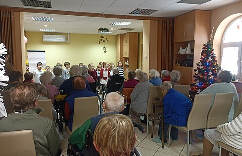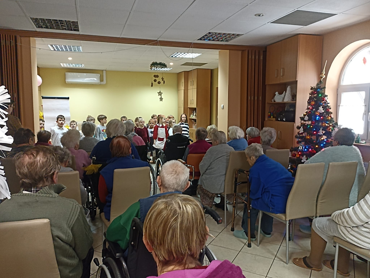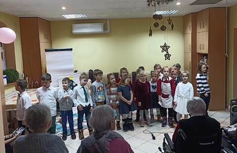 W tym pięknym , świątecznym czasie odwiedziły nas jak co roku dzieci wraz z opiekunami z Przedszkola "Kot w butach". Dzieci przygotowały dla nas piękne, świąteczne przedstawienie. Dziękujemy za trud i przygotowanie.