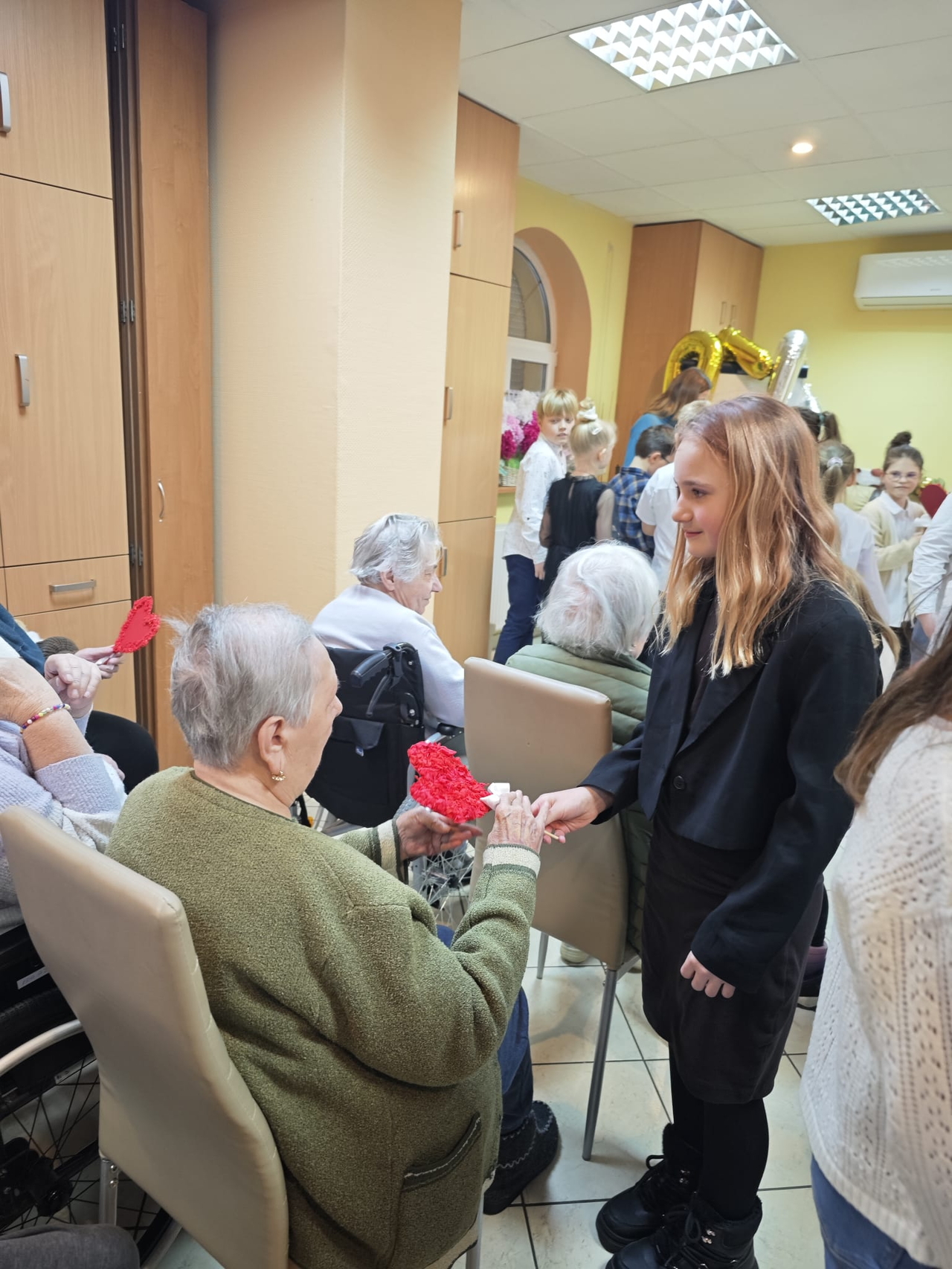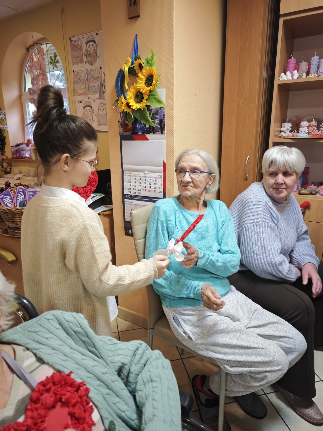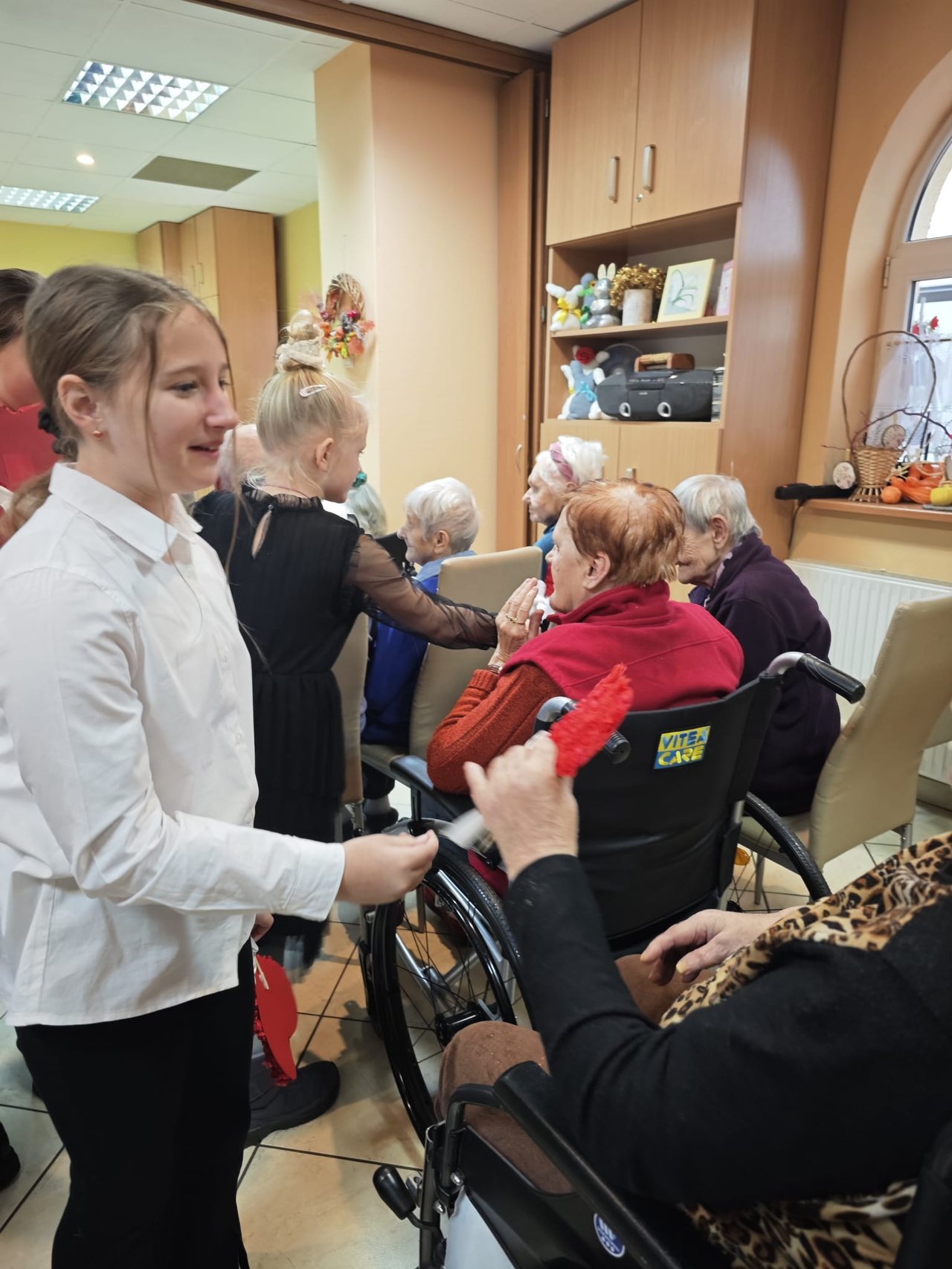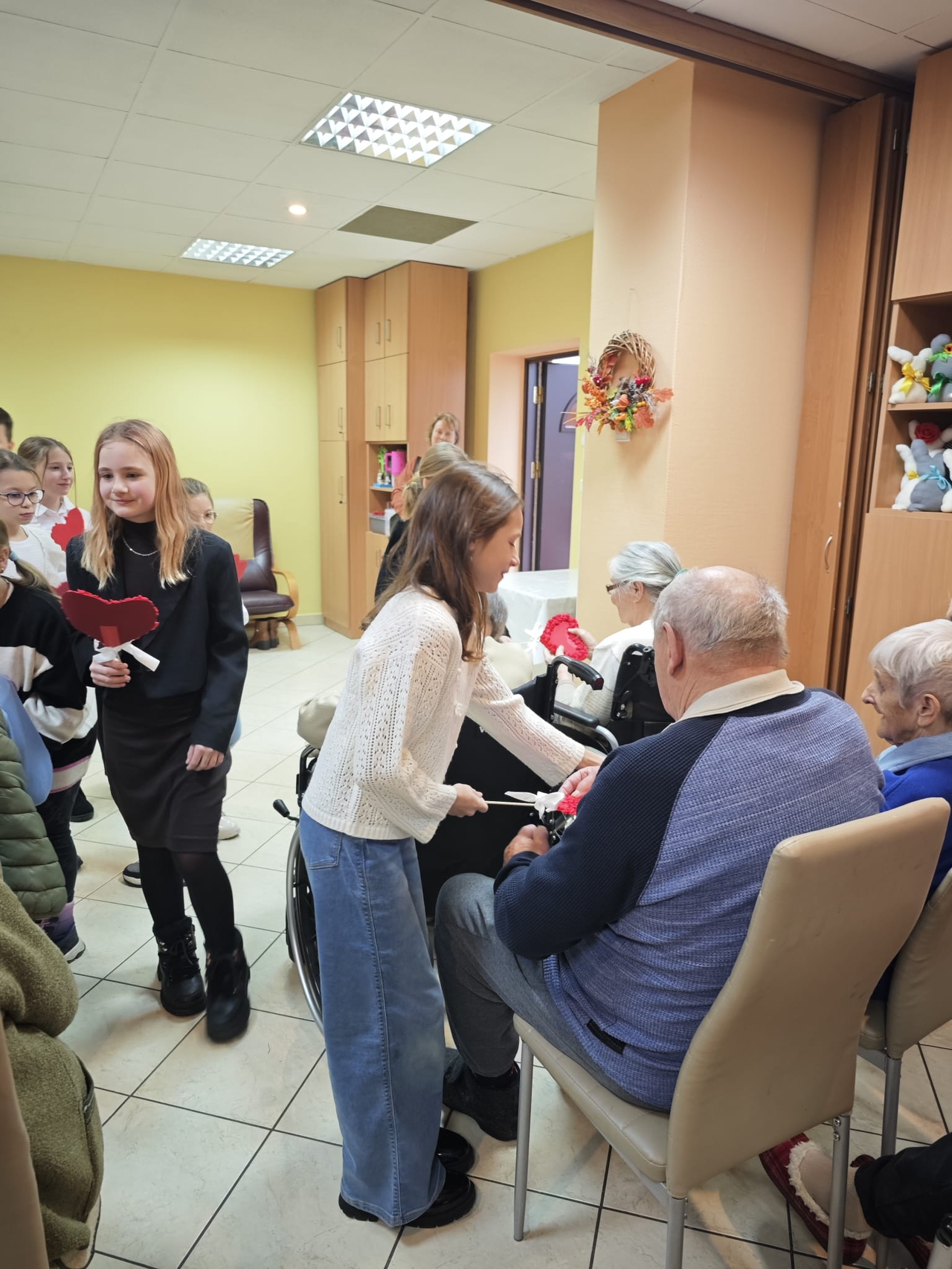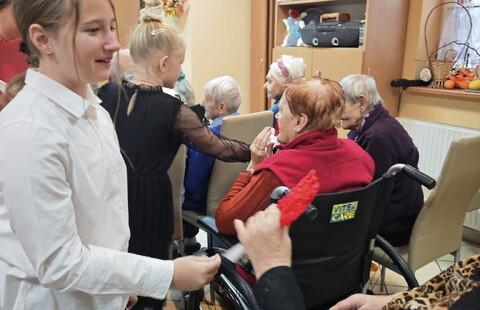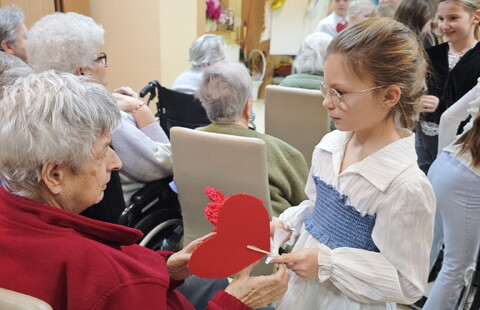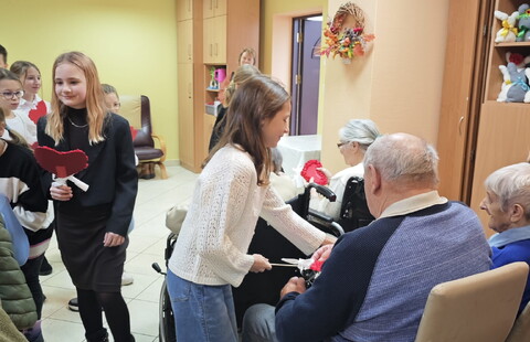 Dzieci wręczyły także własnoręcznie zrobione serduszka, które wywołały uśmiechy i łzy wzruszenia. Mieszkańcy otrzymali także herbatki i słodkości.