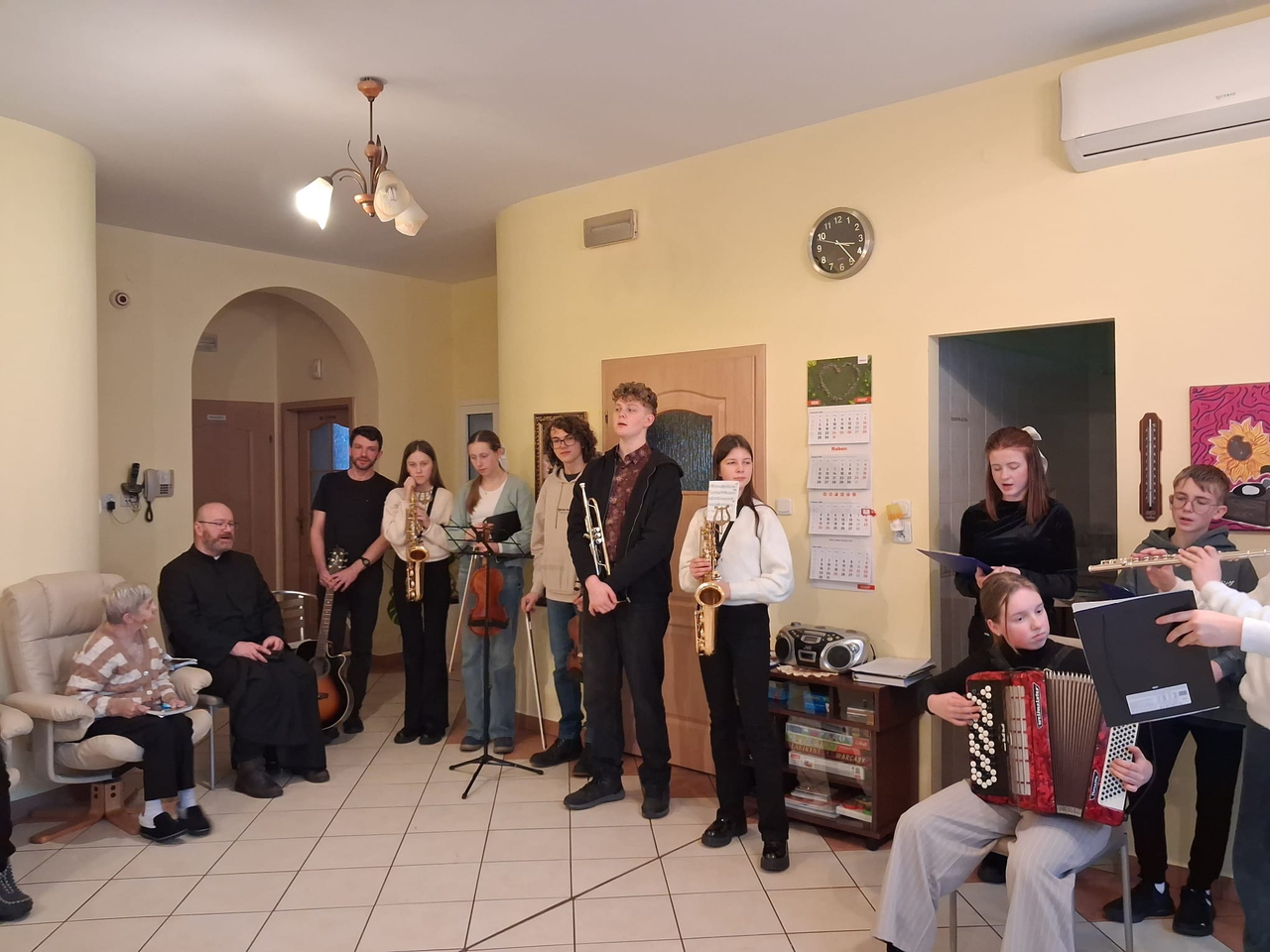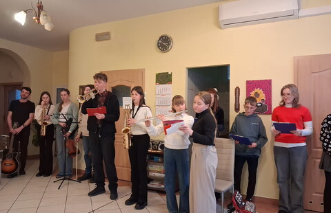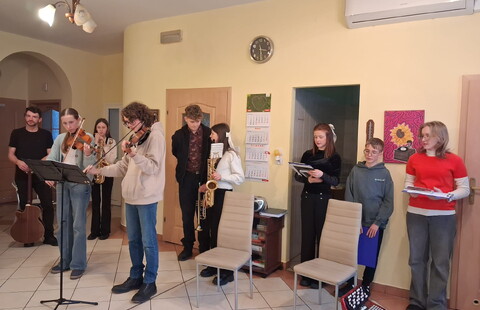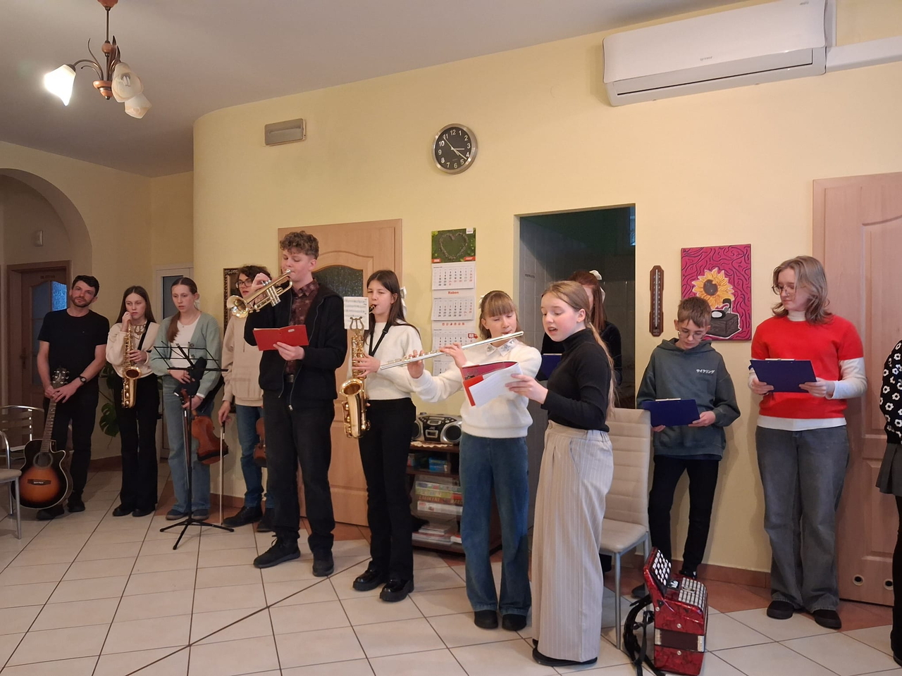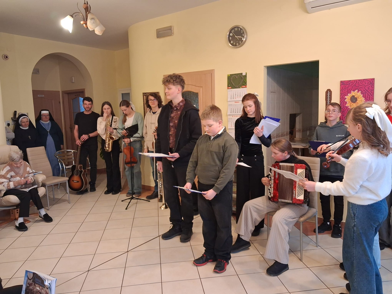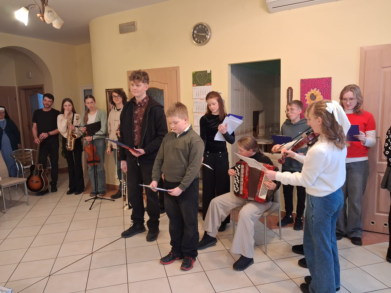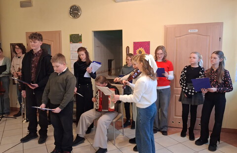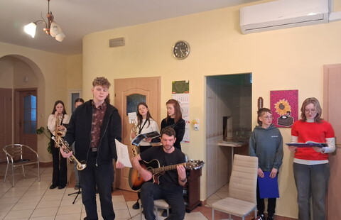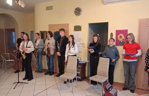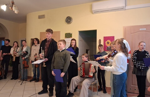Dzieci i młodzież pięknie grały na różnorodnych instrumentach, wśród których znalazły się m. in. gitara, trąbka, akordeon i skrzypce. Kolędy i pastorałki rozlegały się w całym naszym domu.