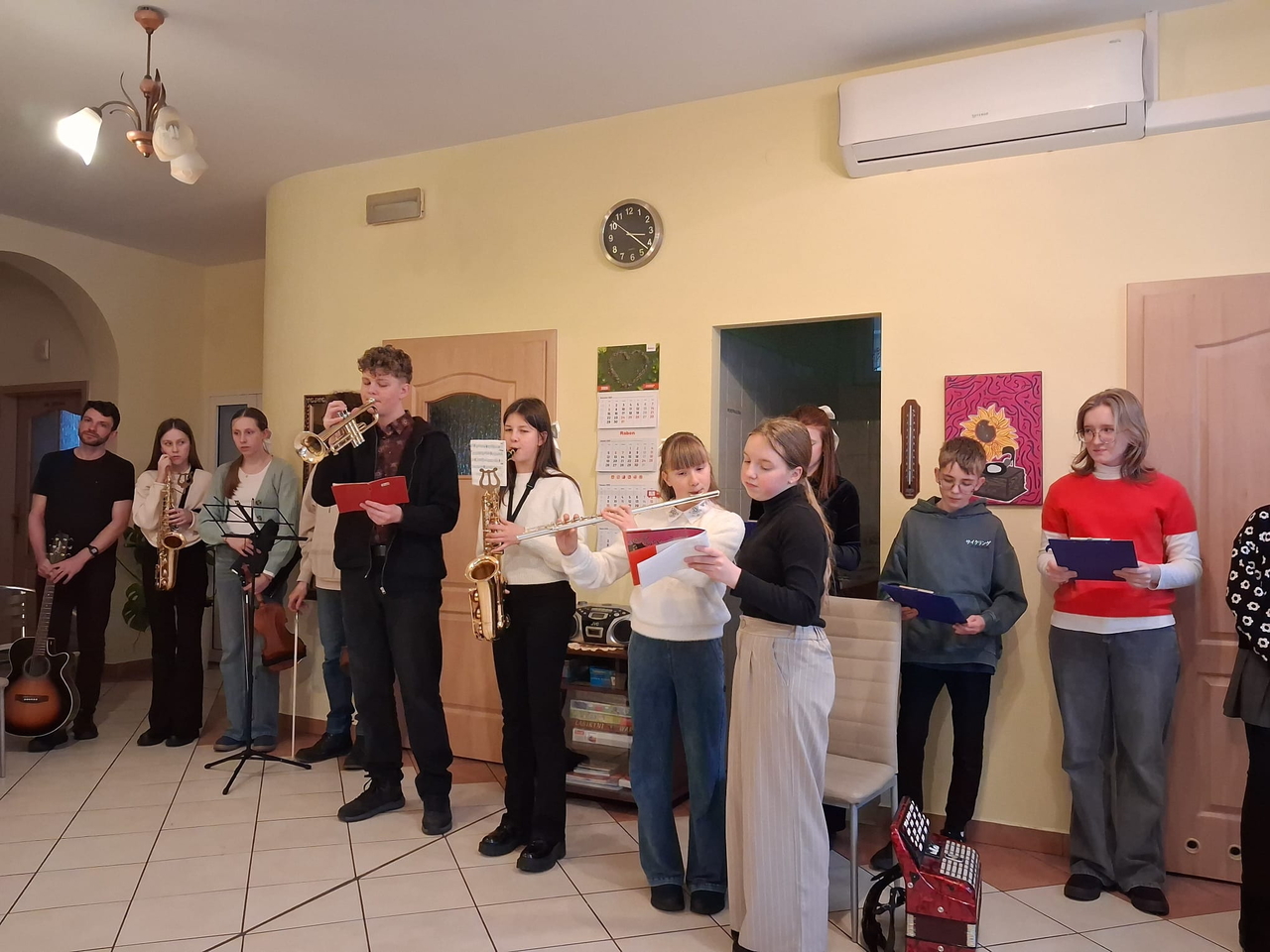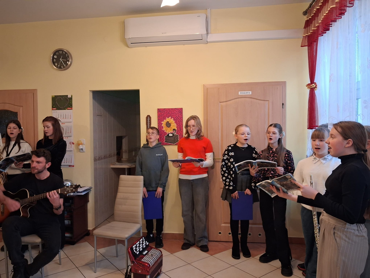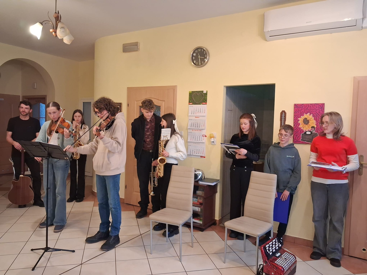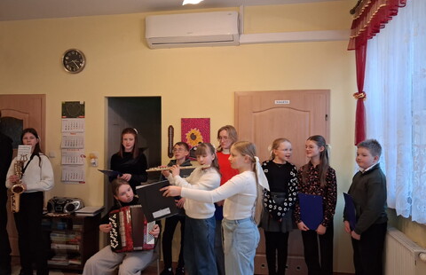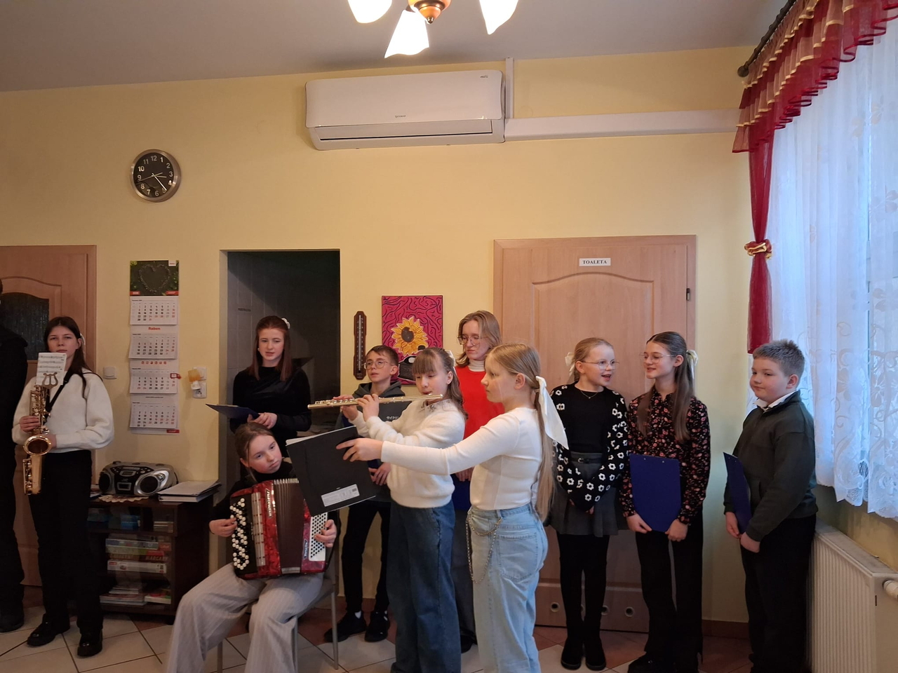 Dzieci i młodzież pięknie grały na różnorodnych instrumentach, wśród których znalazły się m. in. gitara, trąbka, akordeon i skrzypce. Kolędy i pastorałki rozlegały się w całym naszym domu.