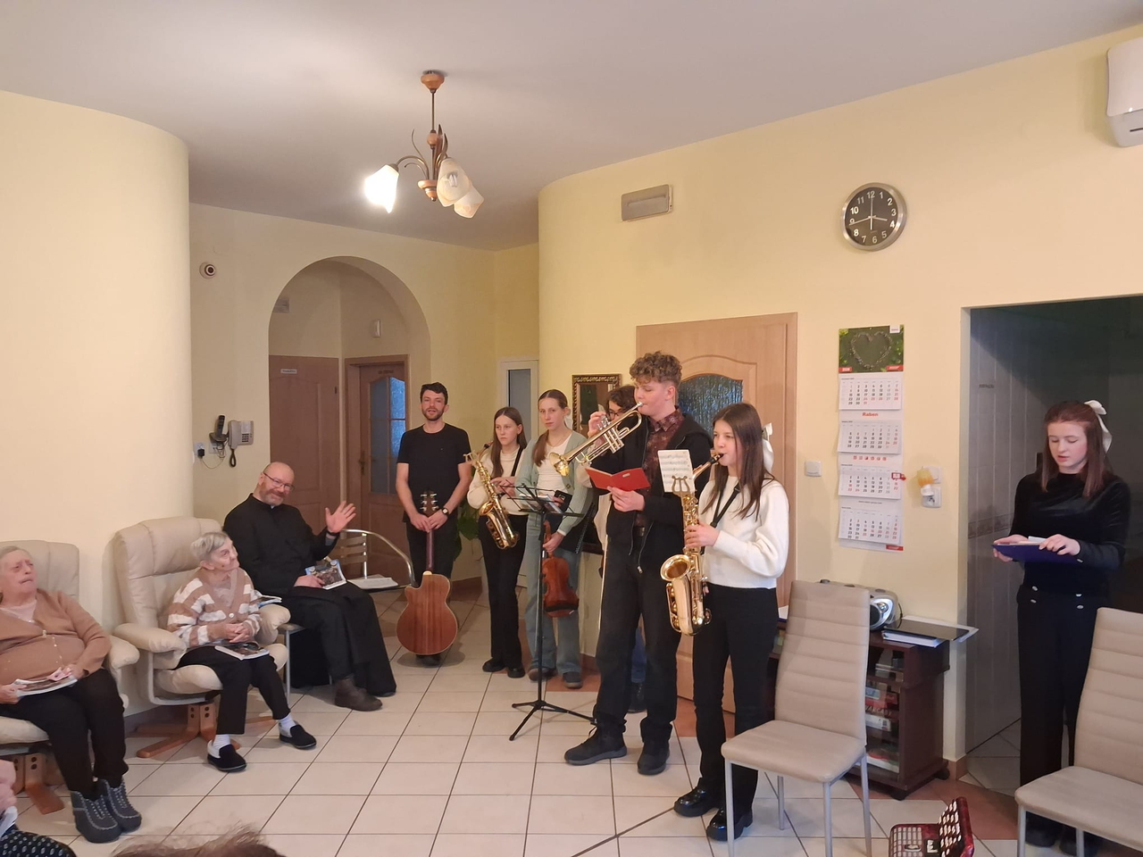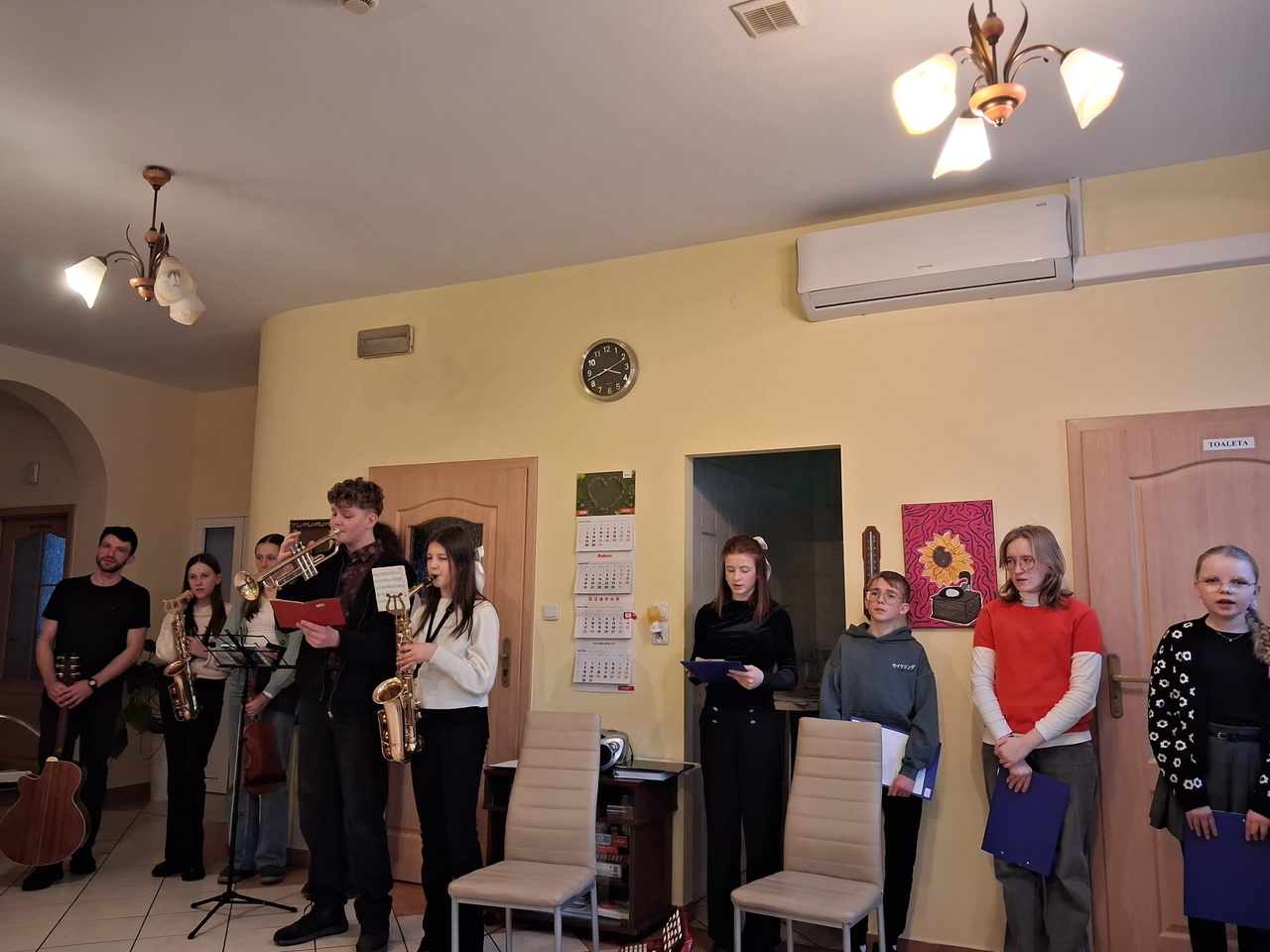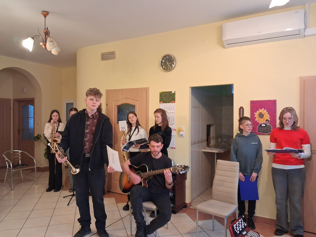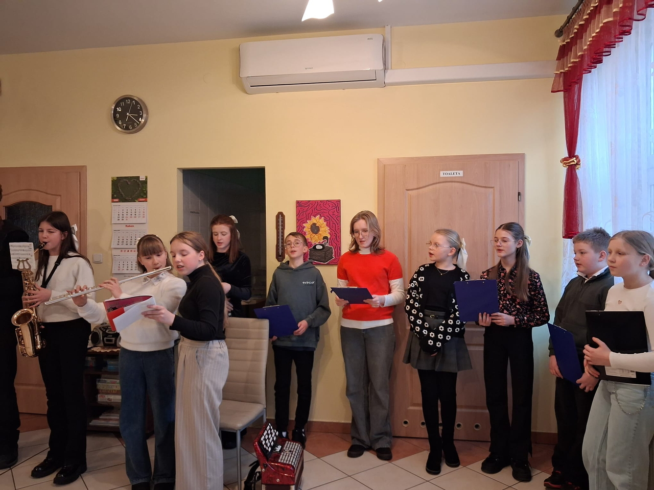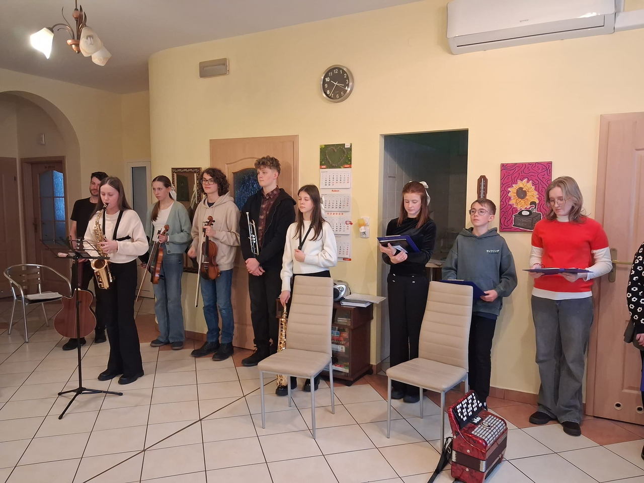 Dzieci i młodzież pięknie grały na różnorodnych instrumentach, wśród których znalazły się m. in. gitara, trąbka, akordeon i skrzypce. Kolędy i pastorałki rozlegały się w całym naszym domu.