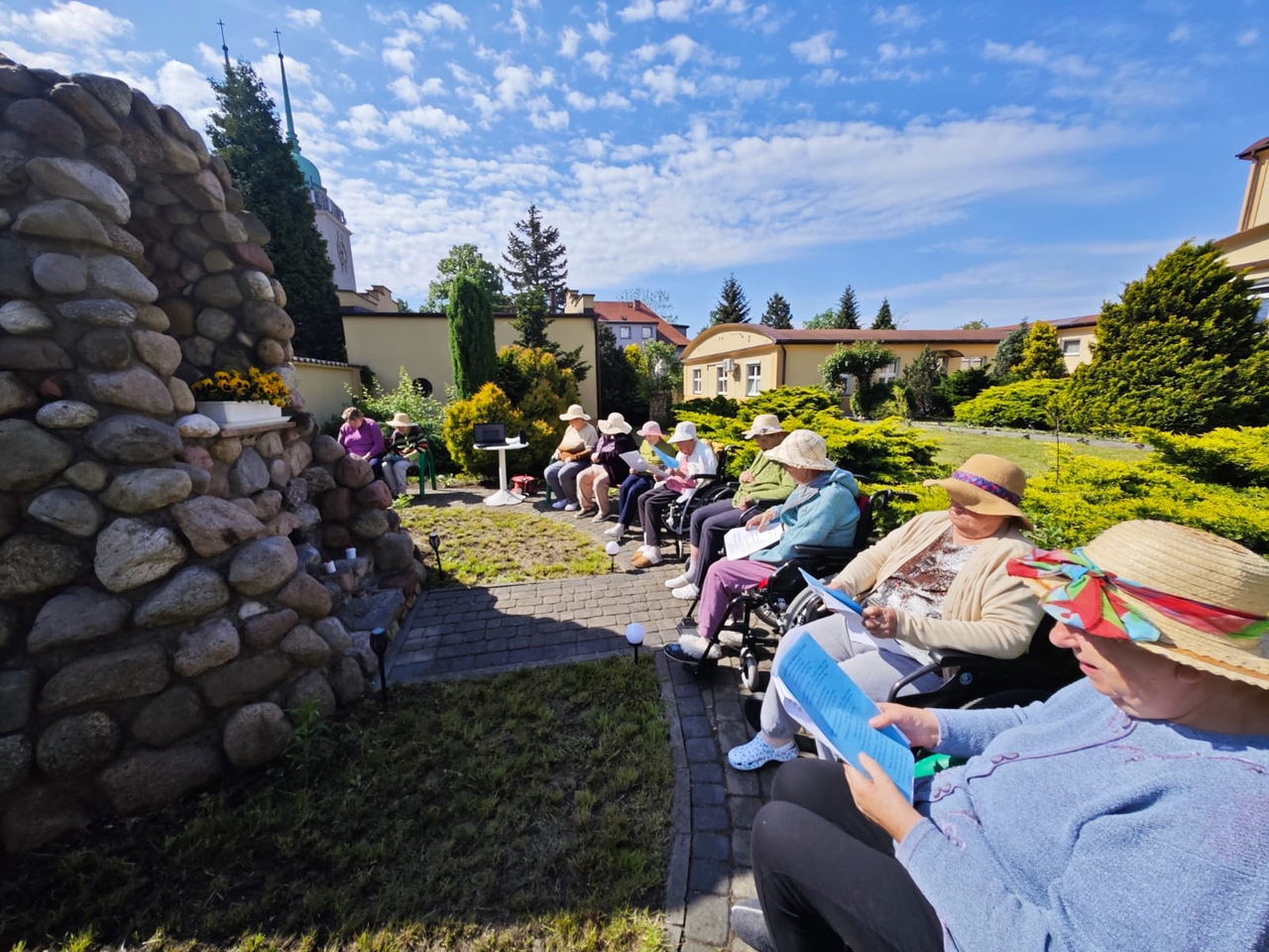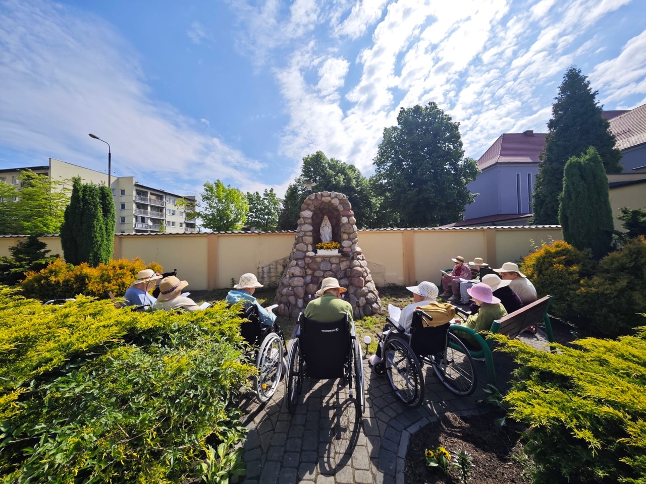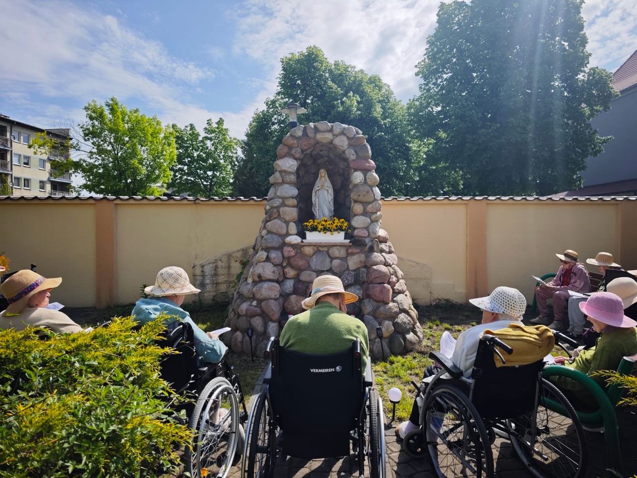 Miesiąc maj- to miesiąc poświęcony Maryi. W naszym ogrodzie mamy grotę maryjną, przy której nasi Mieszkańcy odprawili nabożeństwo majowe.