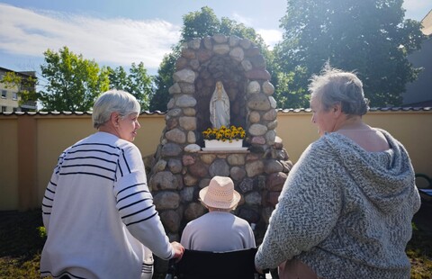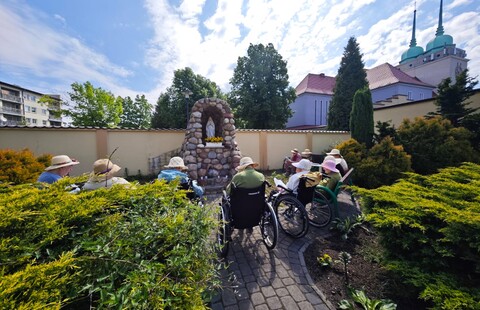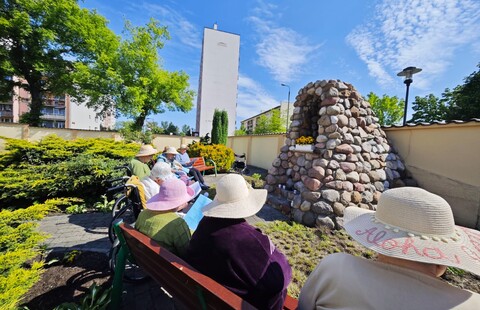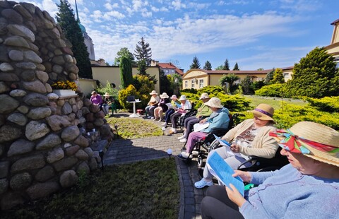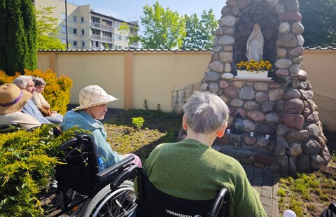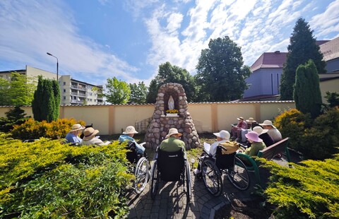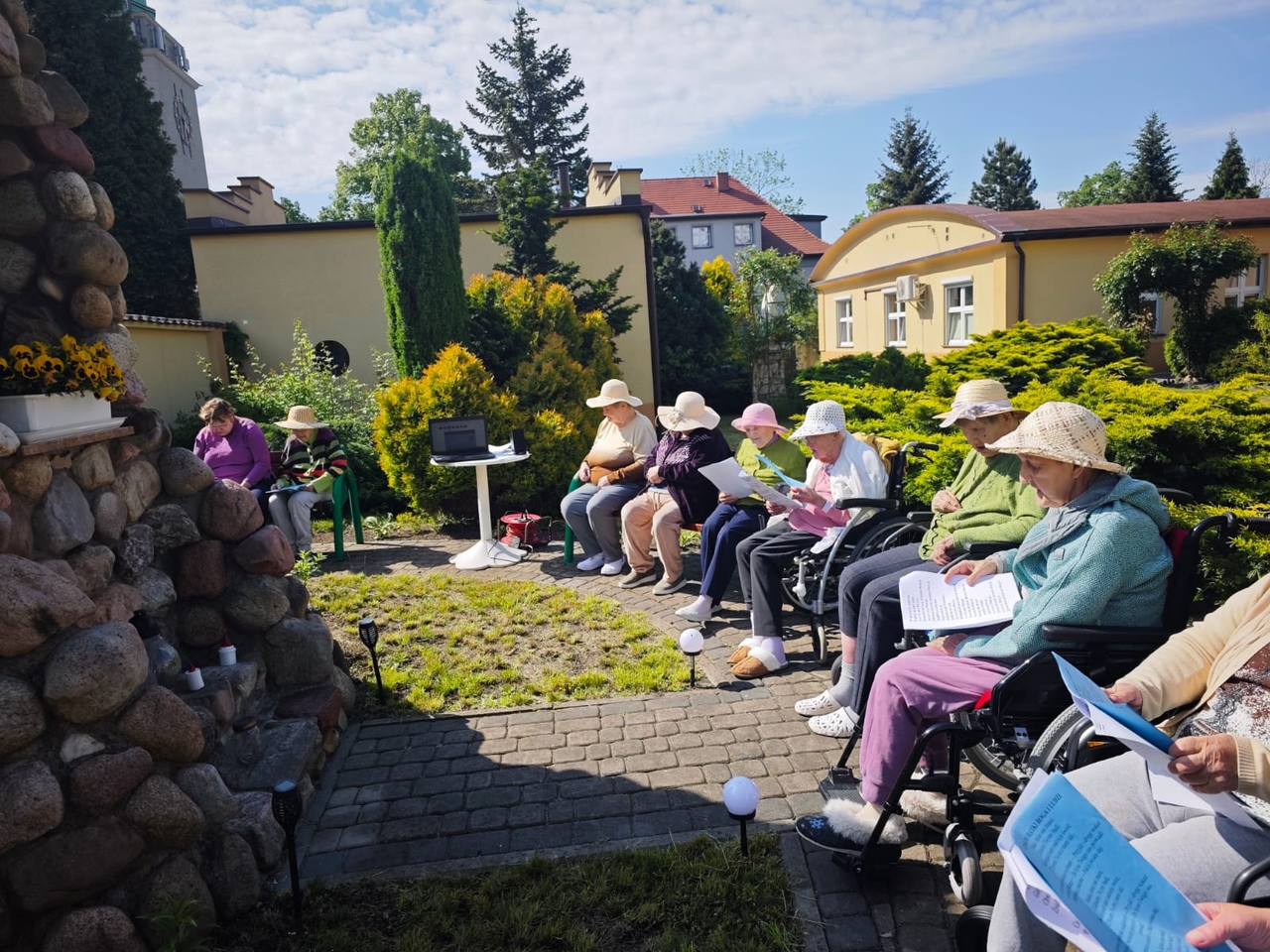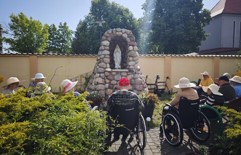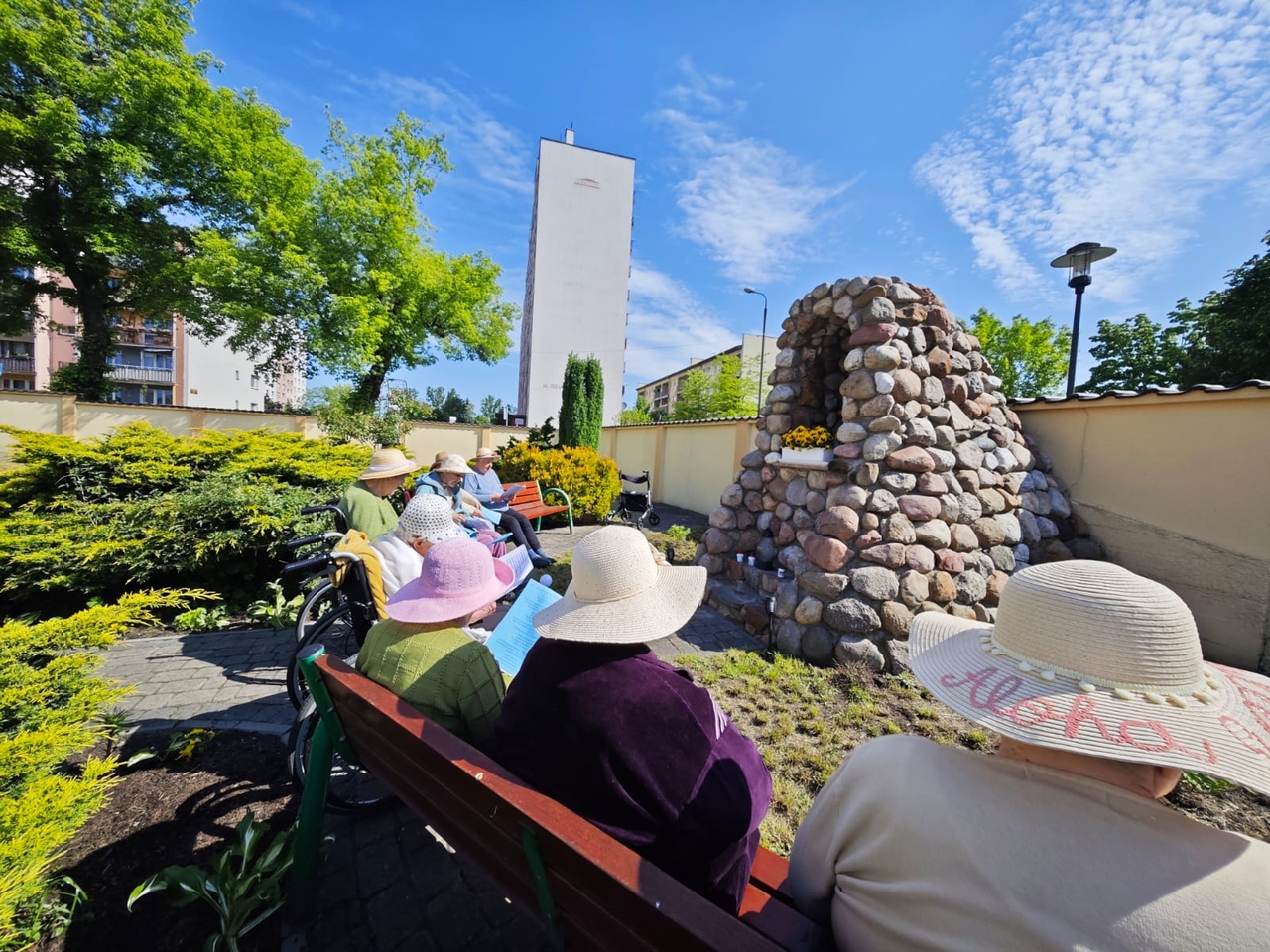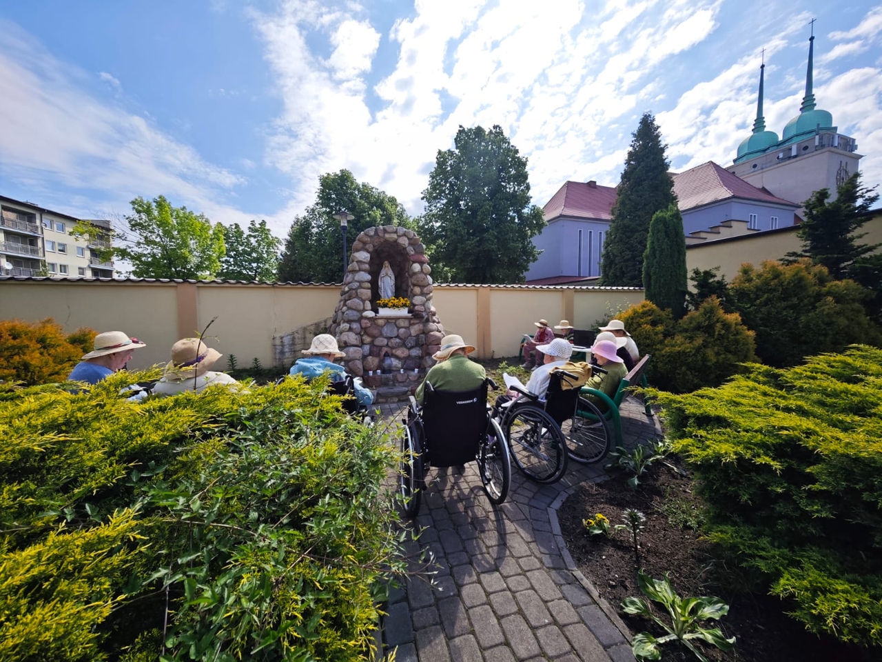 Miesiąc maj- to miesiąc poświęcony Maryi. W naszym ogrodzie mamy grotę maryjną, przy której nasi Mieszkańcy odprawili nabożeństwo majowe.