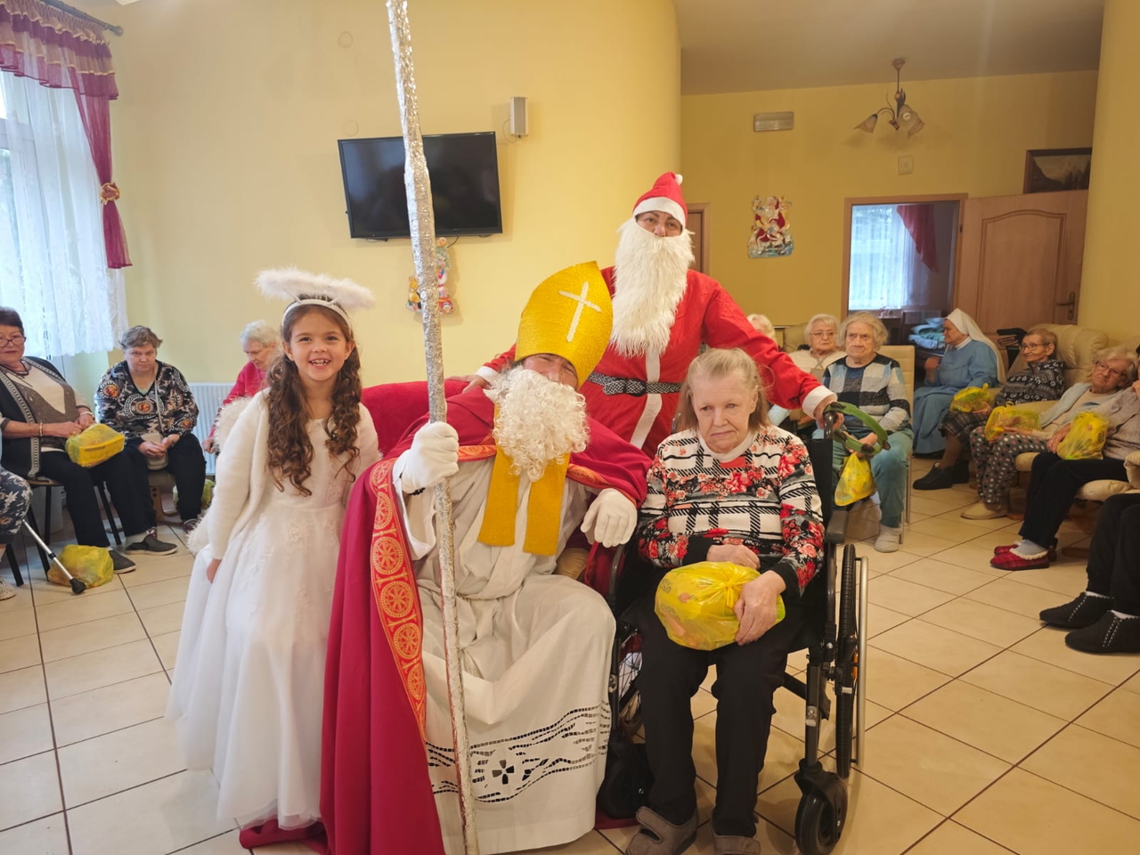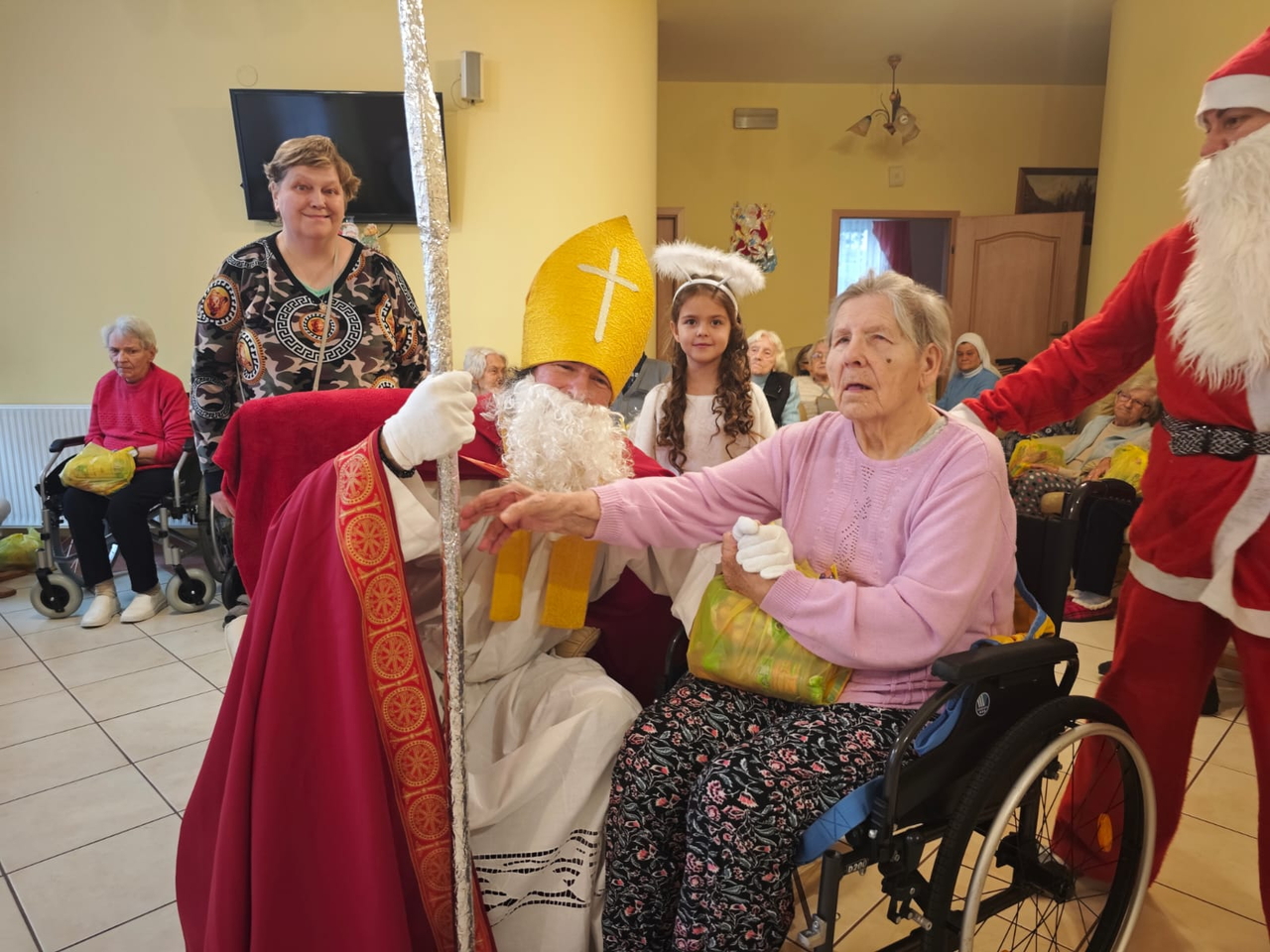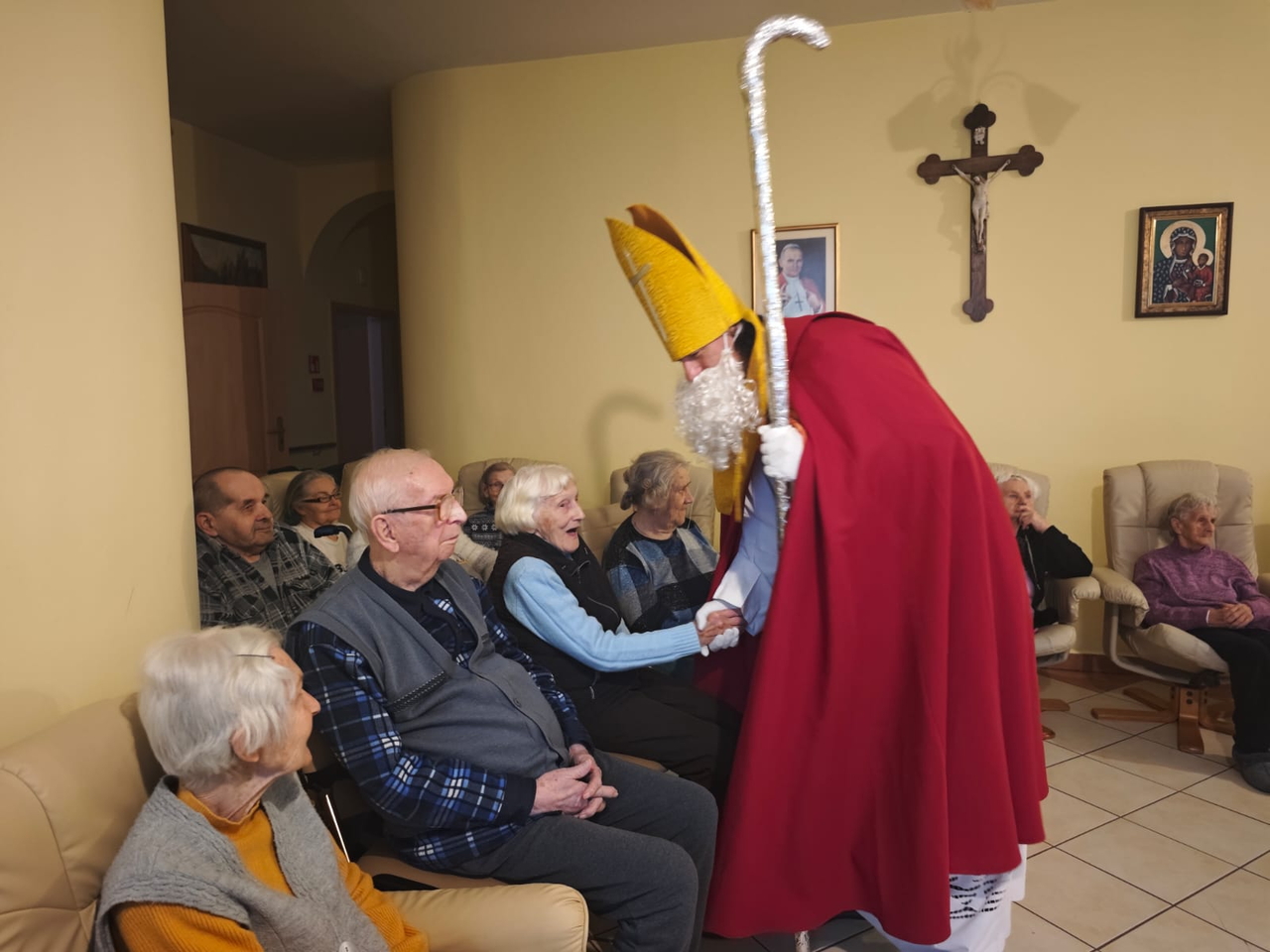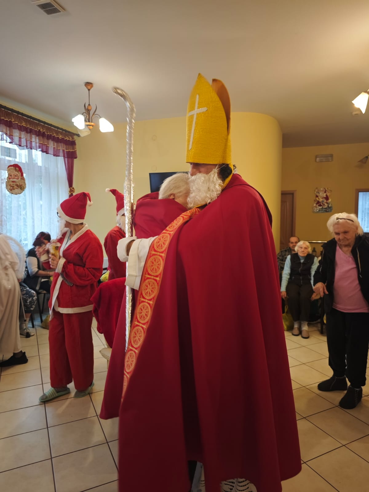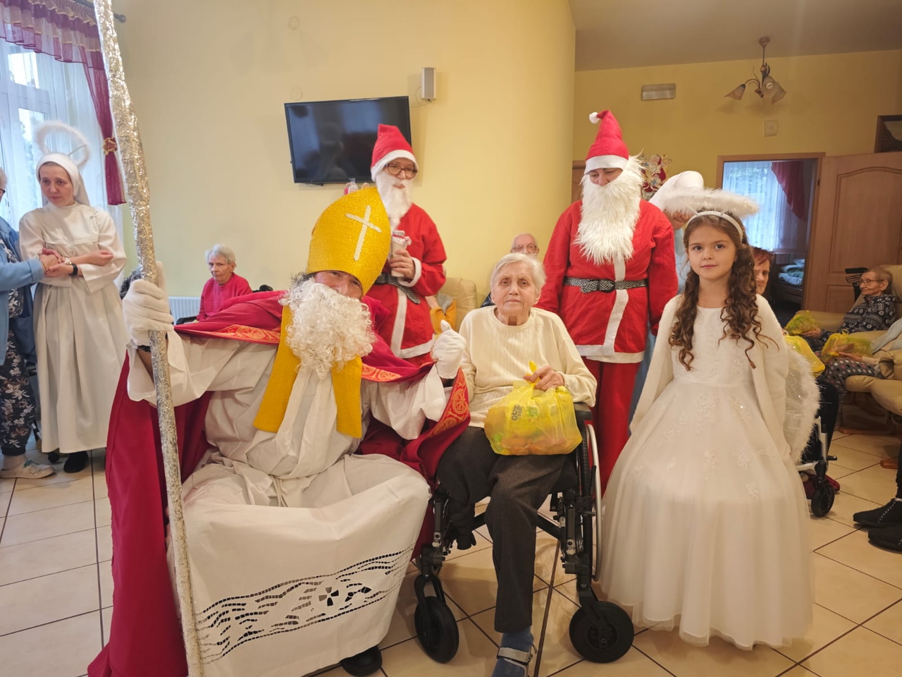 6 grudnia, to jak wiadomo dzień szczególny. I do nas zawitał św. Mikołaj wraz z aniołkami i pomocnikami- elfami. Radości było co niemiara. Odwiedził wszystkich i tych przebywających w pokojach i tych, którzy już wyczekiwali go wspólnie. Była okazja, aby nasi Mieszkańcy powiedzieli coś Mikołajowi lub zaśpiewali. Mogli sobie także zrobić sobie z Nim zdjęcie, bo zobaczą Go dopiero za rok :)