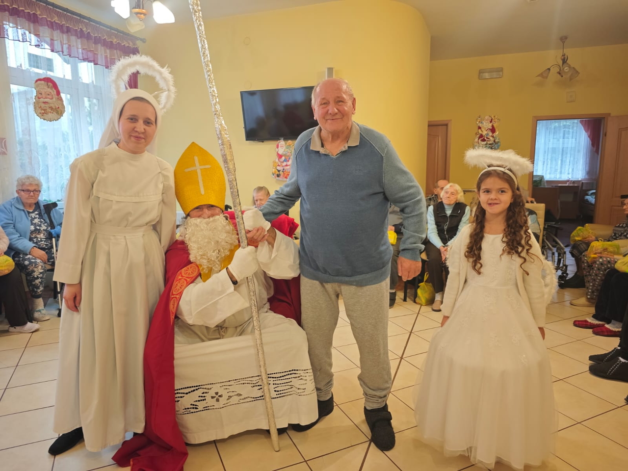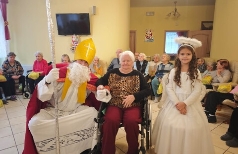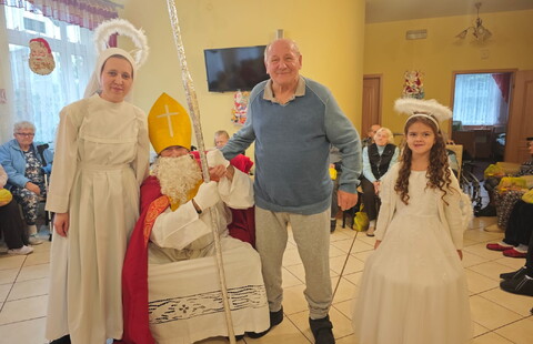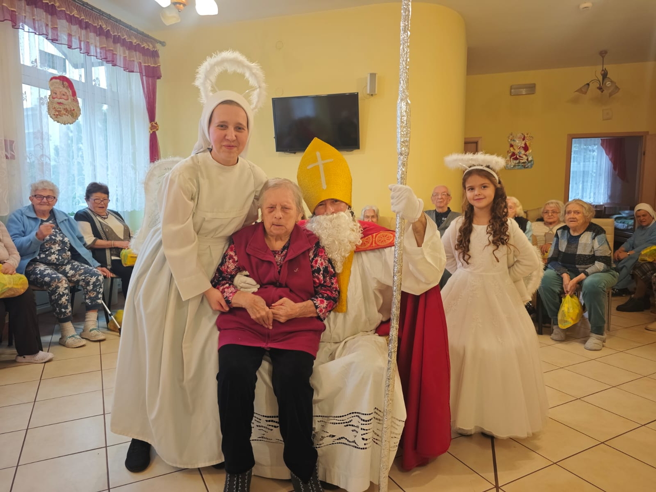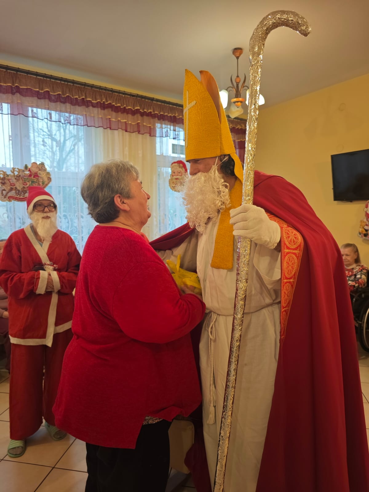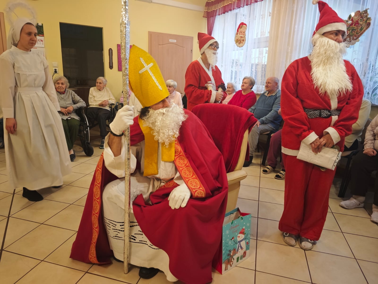 6 grudnia, to jak wiadomo dzień szczególny. I do nas zawitał św. Mikołaj wraz z aniołkami i pomocnikami- elfami. Radości było co niemiara. Odwiedził wszystkich i tych przebywających w pokojach i tych, którzy już wyczekiwali go wspólnie. Była okazja, aby nasi Mieszkańcy powiedzieli coś Mikołajowi lub zaśpiewali. Mogli sobie także zrobić sobie z Nim zdjęcie, bo zobaczą Go dopiero za rok :)