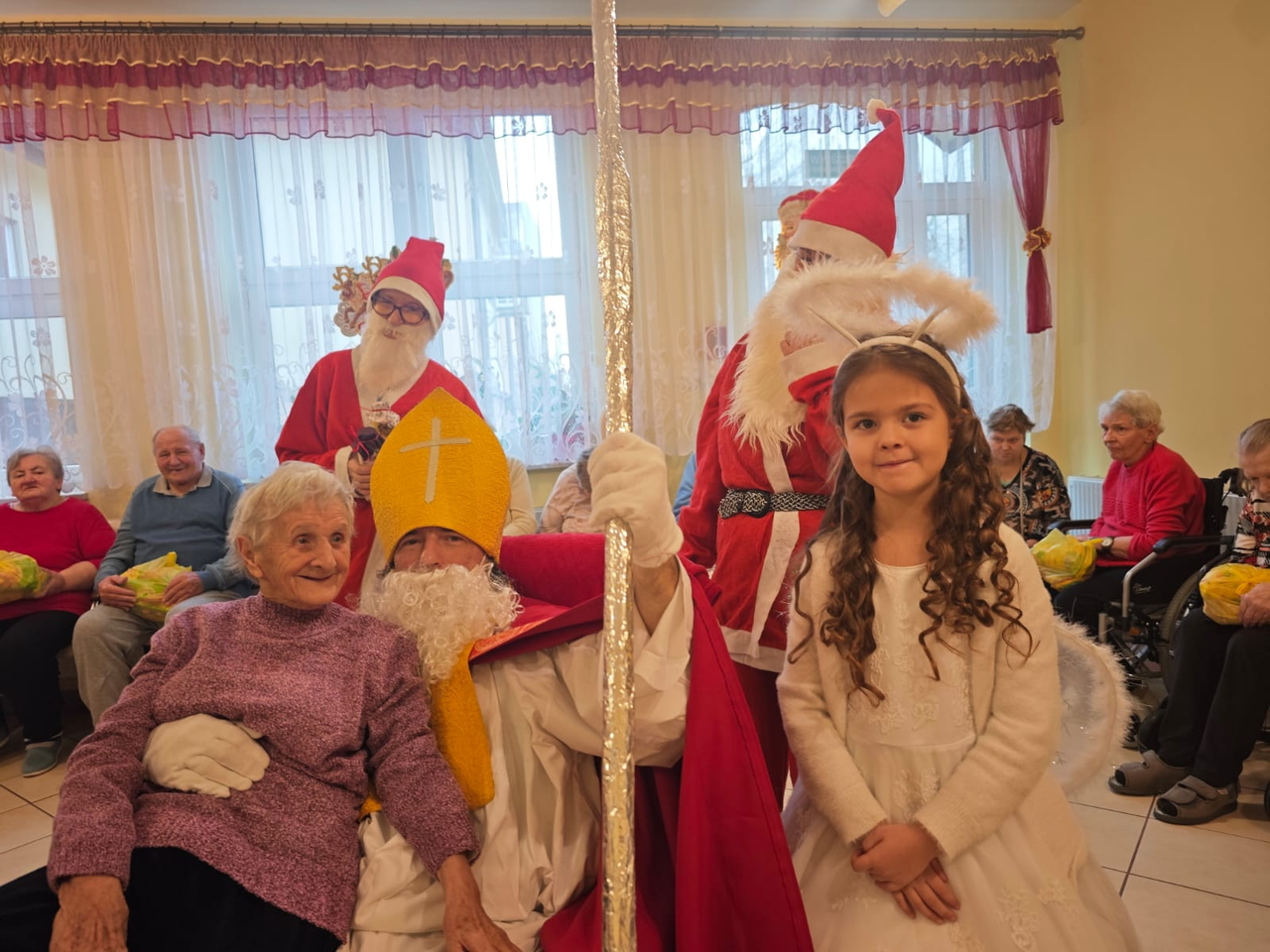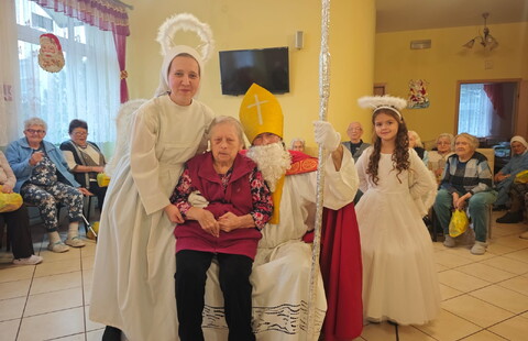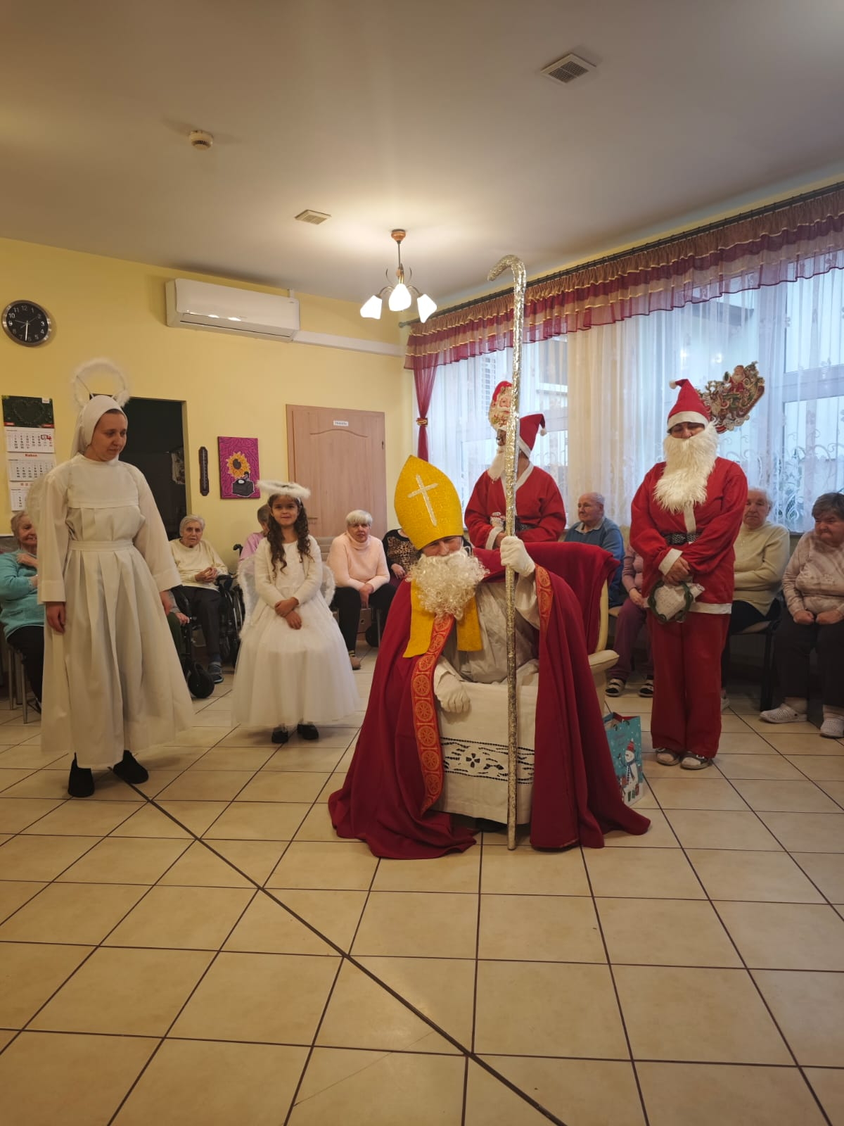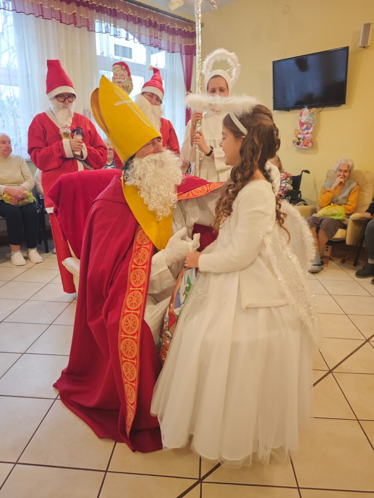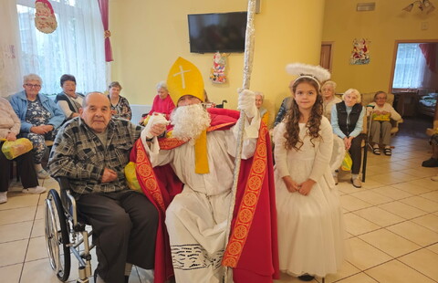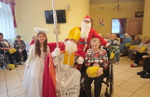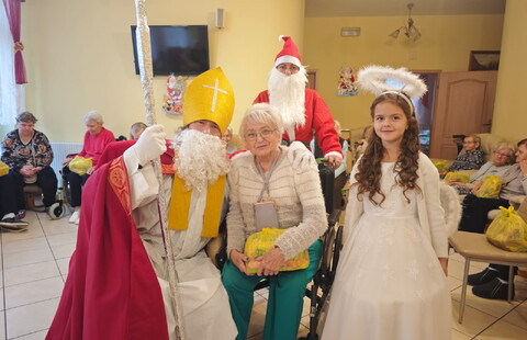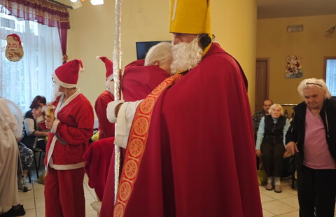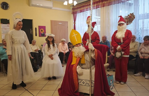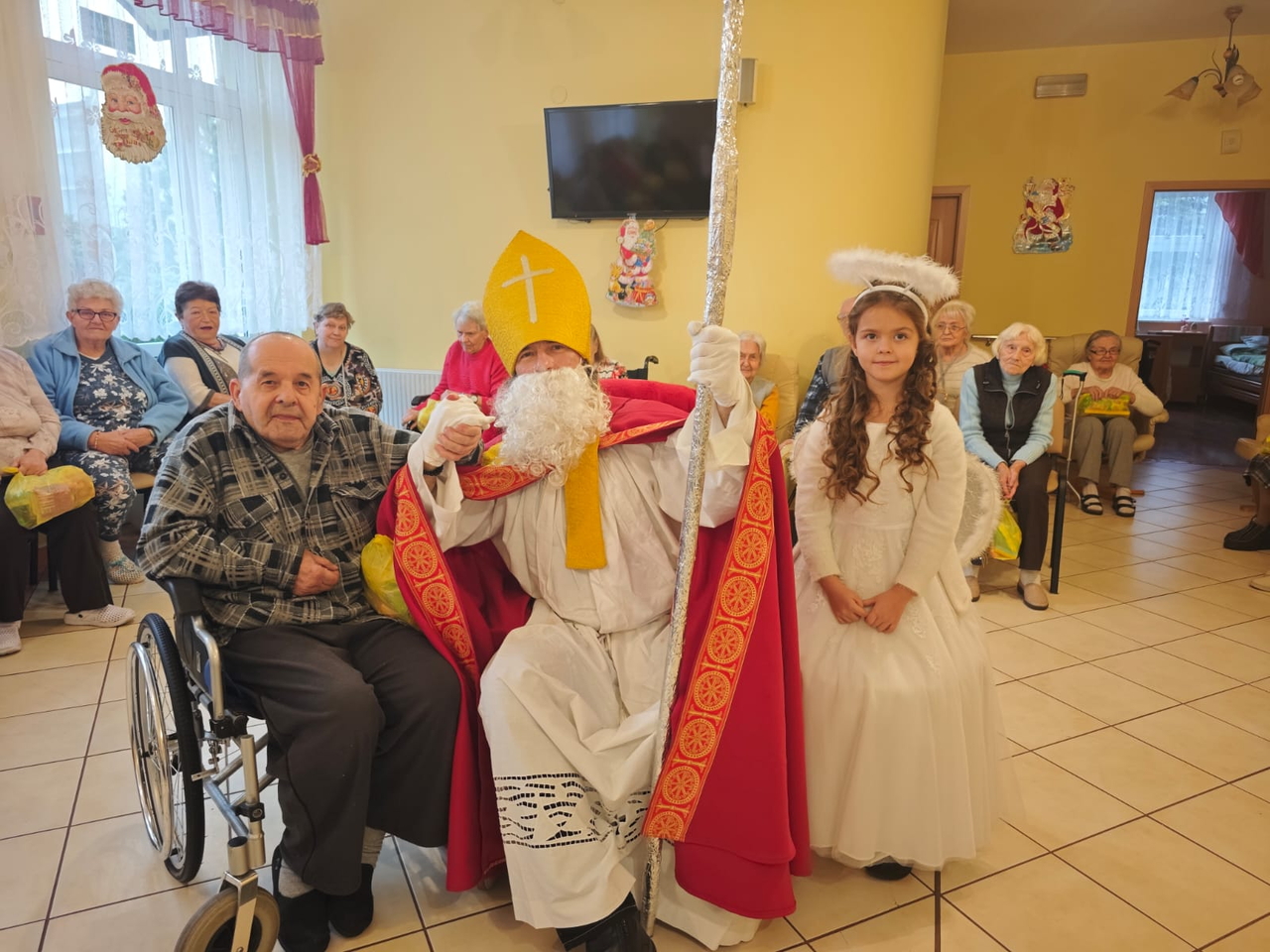 6 grudnia, to jak wiadomo dzień szczególny. I do nas zawitał św. Mikołaj wraz z aniołkami i pomocnikami- elfami. Radości było co niemiara. Odwiedził wszystkich i tych przebywających w pokojach i tych, którzy już wyczekiwali go wspólnie. Była okazja, aby nasi Mieszkańcy powiedzieli coś Mikołajowi lub zaśpiewali. Mogli sobie także zrobić sobie z Nim zdjęcie, bo zobaczą Go dopiero za rok :)