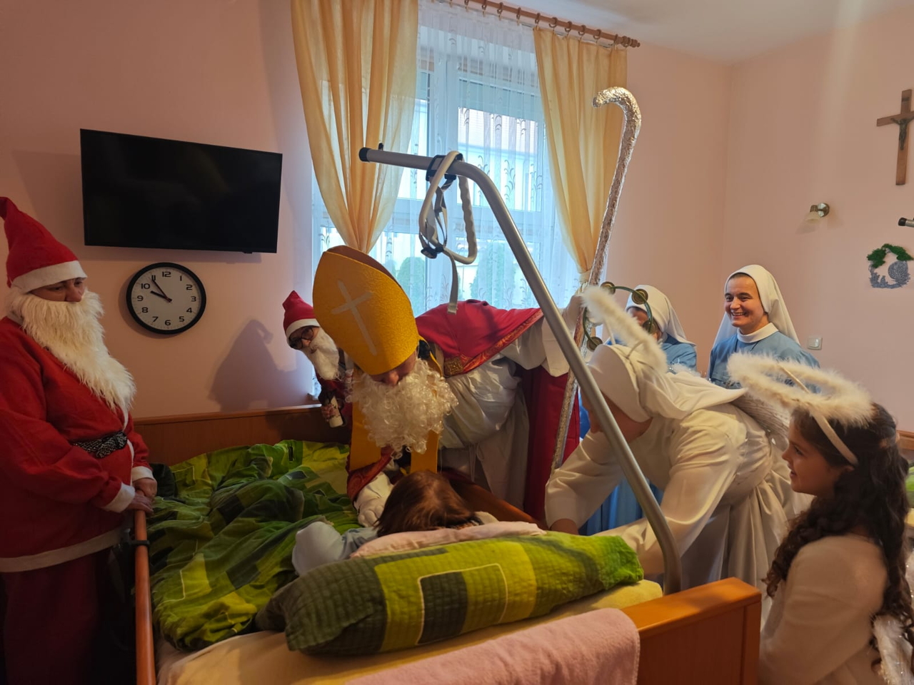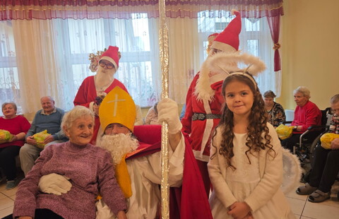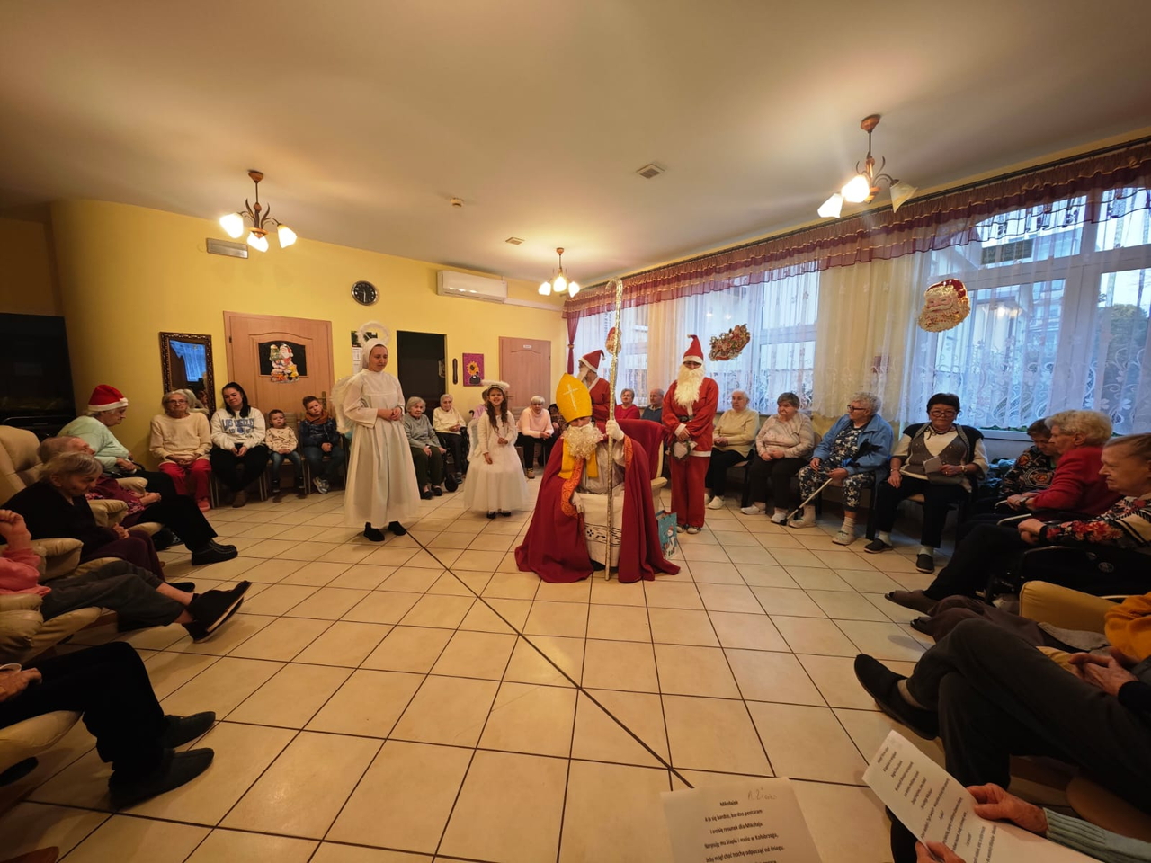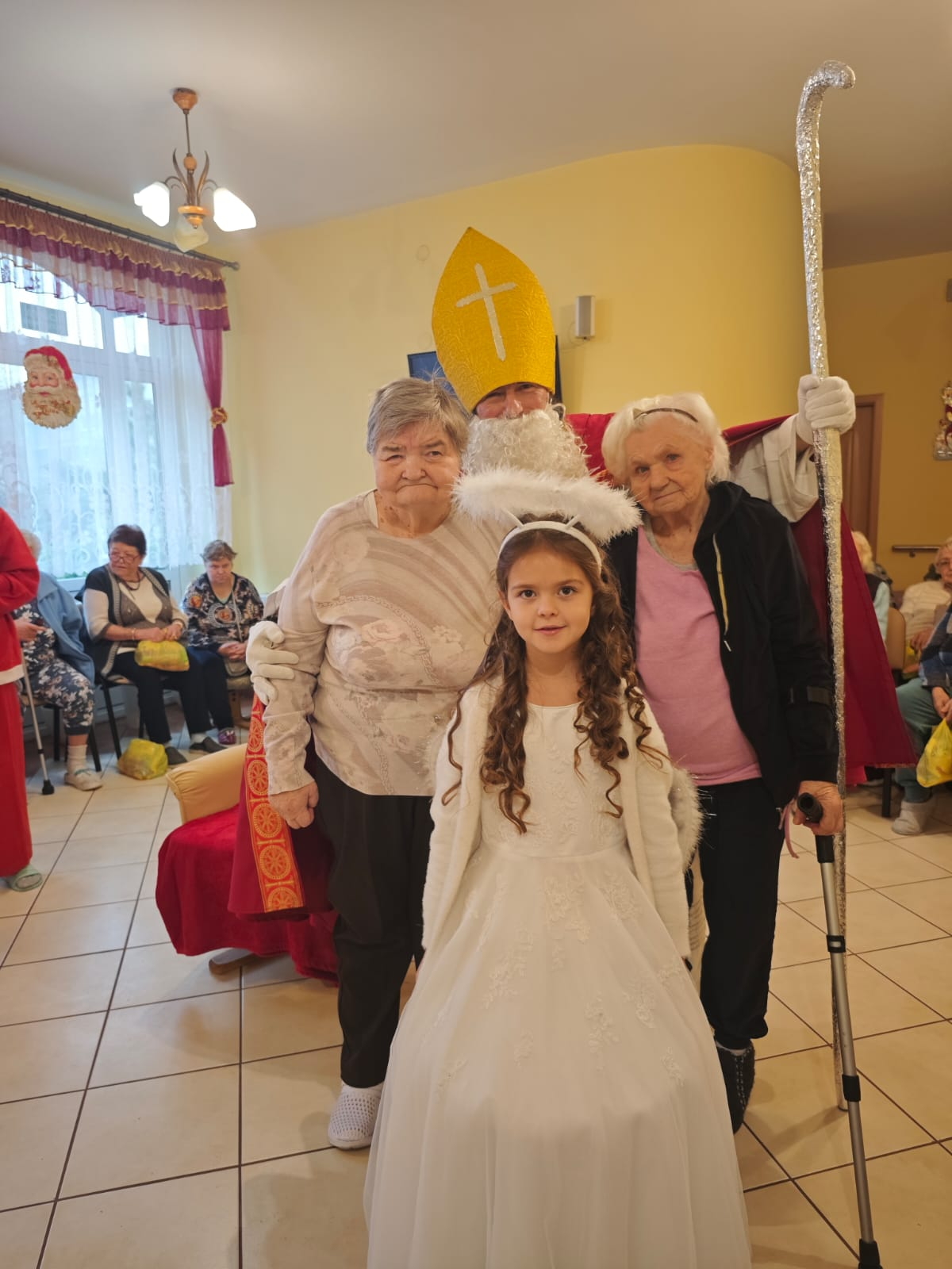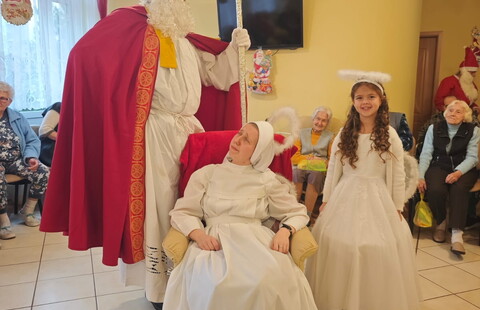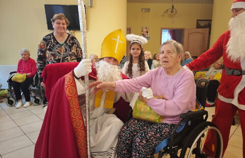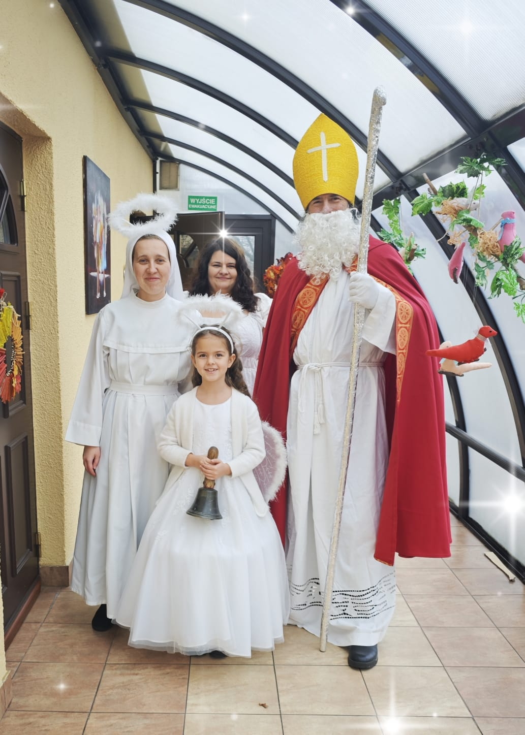 6 grudnia, to jak wiadomo dzień szczególny. I do nas zawitał św. Mikołaj wraz z aniołkami i pomocnikami- elfami. Radości było co niemiara. Odwiedził wszystkich i tych przebywających w pokojach i tych, którzy już wyczekiwali go wspólnie. Była okazja, aby nasi Mieszkańcy powiedzieli coś Mikołajowi lub zaśpiewali. Mogli sobie także zrobić sobie z Nim zdjęcie, bo zobaczą Go dopiero za rok :)