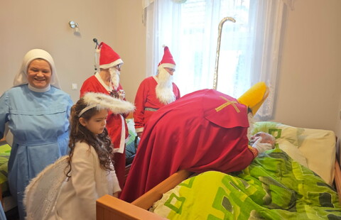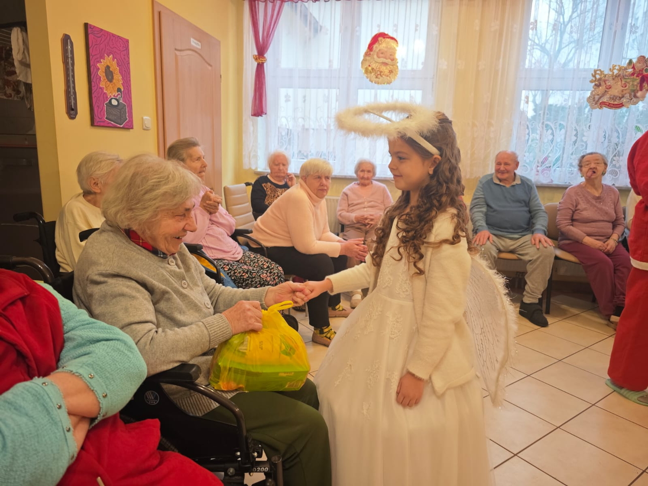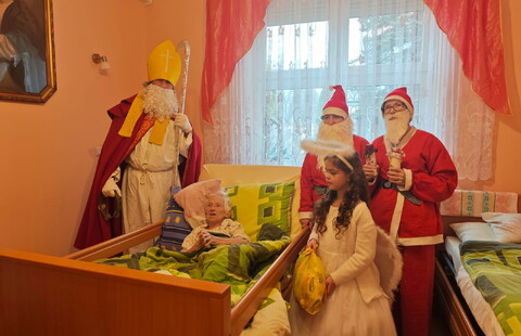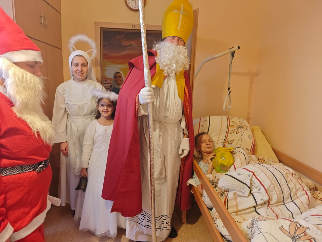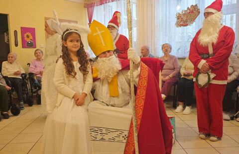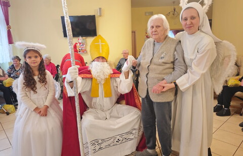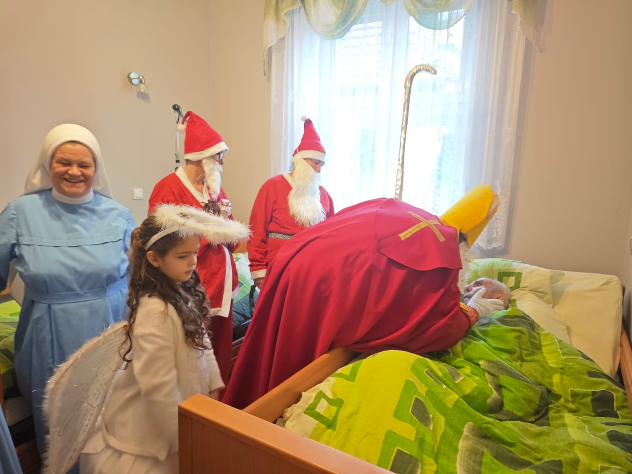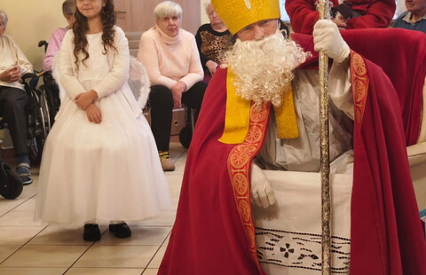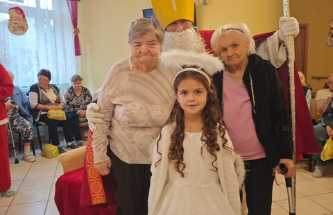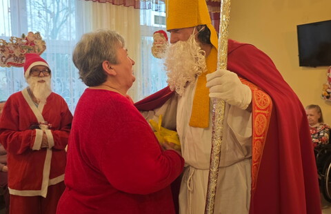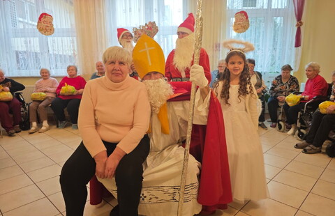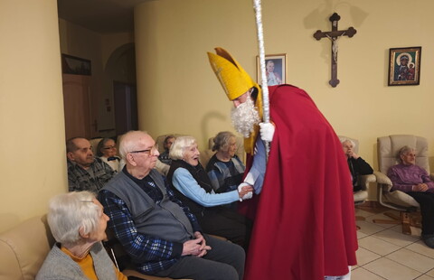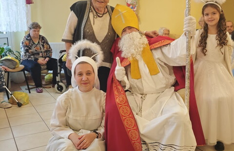 6 grudnia, to jak wiadomo dzień szczególny. I do nas zawitał św. Mikołaj wraz z aniołkami i pomocnikami- elfami. Radości było co niemiara. Odwiedził wszystkich i tych przebywających w pokojach i tych, którzy już wyczekiwali go wspólnie. Była okazja, aby nasi Mieszkańcy powiedzieli coś Mikołajowi lub zaśpiewali. Mogli sobie także zrobić sobie z Nim zdjęcie, bo zobaczą Go dopiero za rok :)