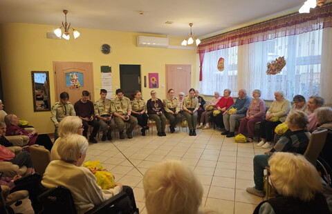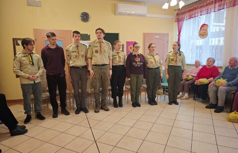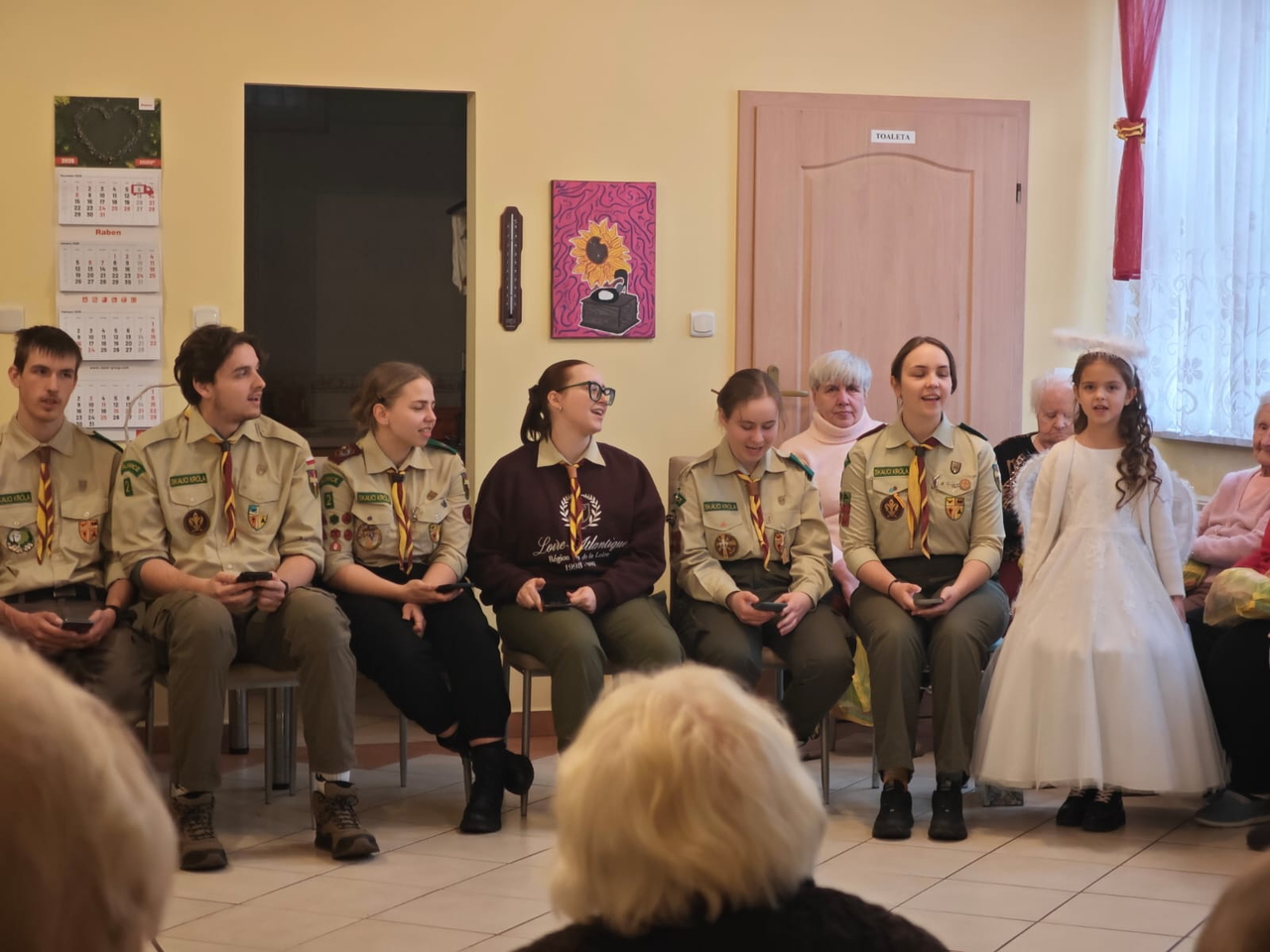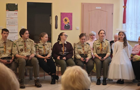Ten dzień był pełen niespodzianek, bo po odwiedzinach Mikołaja, do naszego domu przybyli Skauci Króla. Młodzież wraz z naszymi Mieszkańcami kolędowała. Pojawiło się wzruszenie na twarzach, ale i wzajemne ubogacenie...