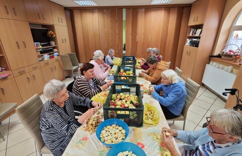 Nasi Mieszkańcy chętnie spacerują po ogrodzie, a i także z radością zaprawiają owoce do słoików.