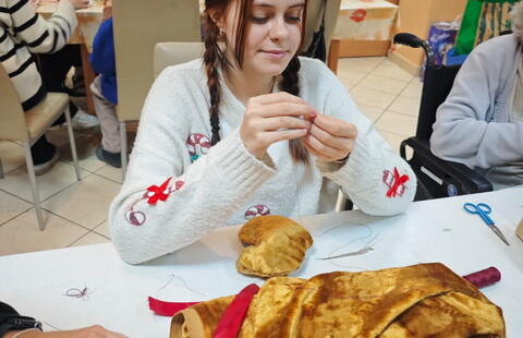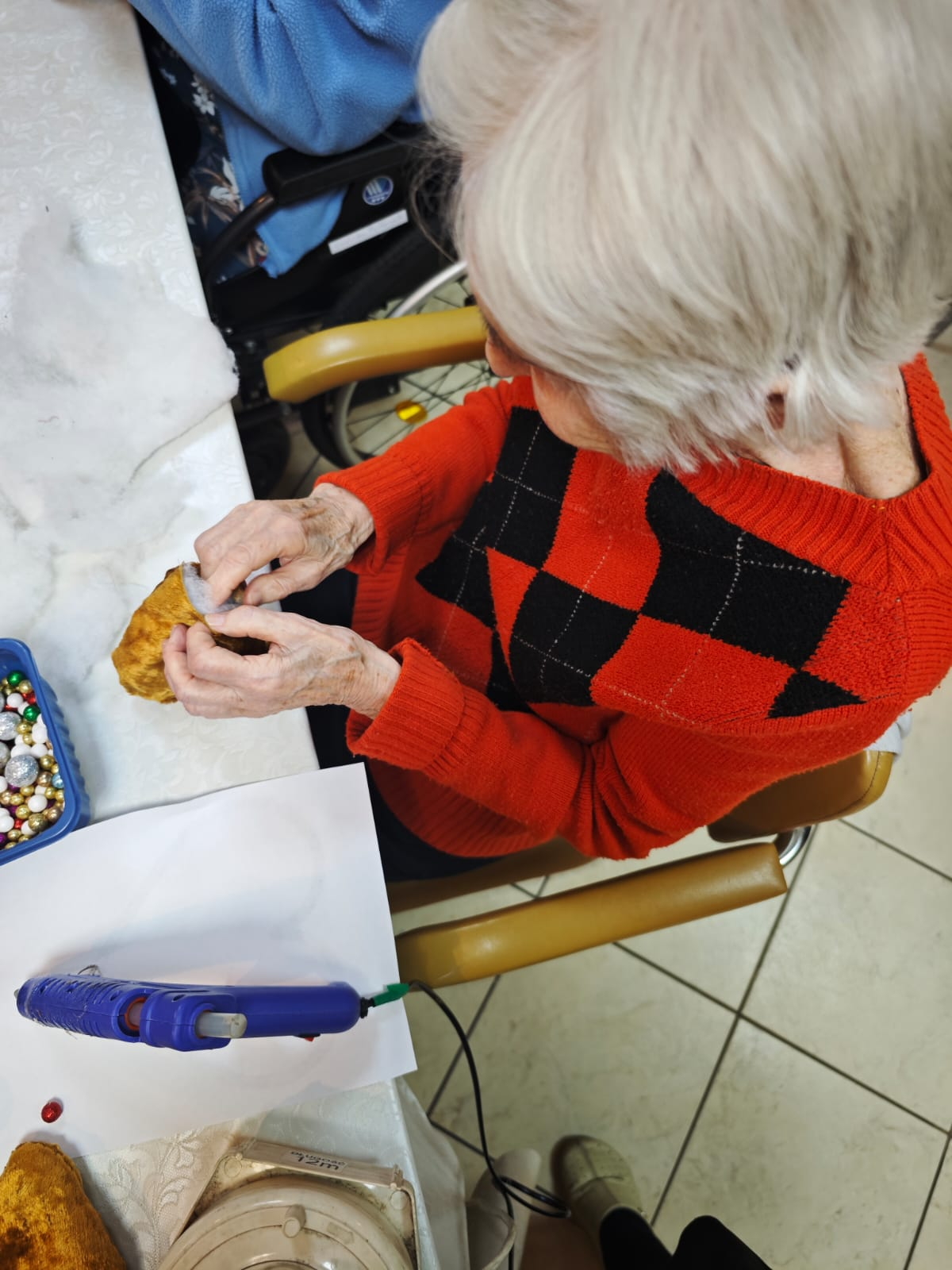 Później przyszła pora na warsztaty plastyczne., w których zarówno seniorzy, jak i uczniowie mogli doskonalić swoje umiejętności, np. szycia.