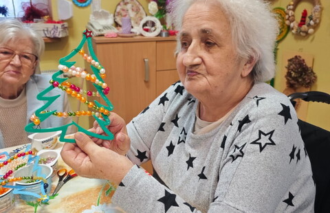 Wspólne kolędowanie stało się pięknym dopełnieniem wizyty — znane melodie przywoływały wspomnienia, a śpiew przynosił seniorom dużo radości i ożywienia.