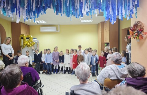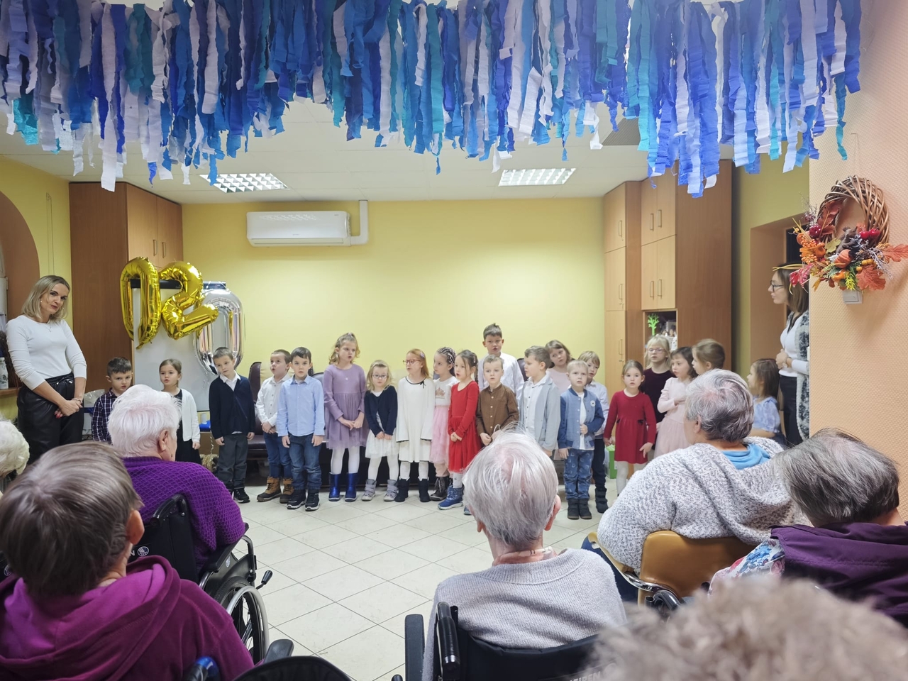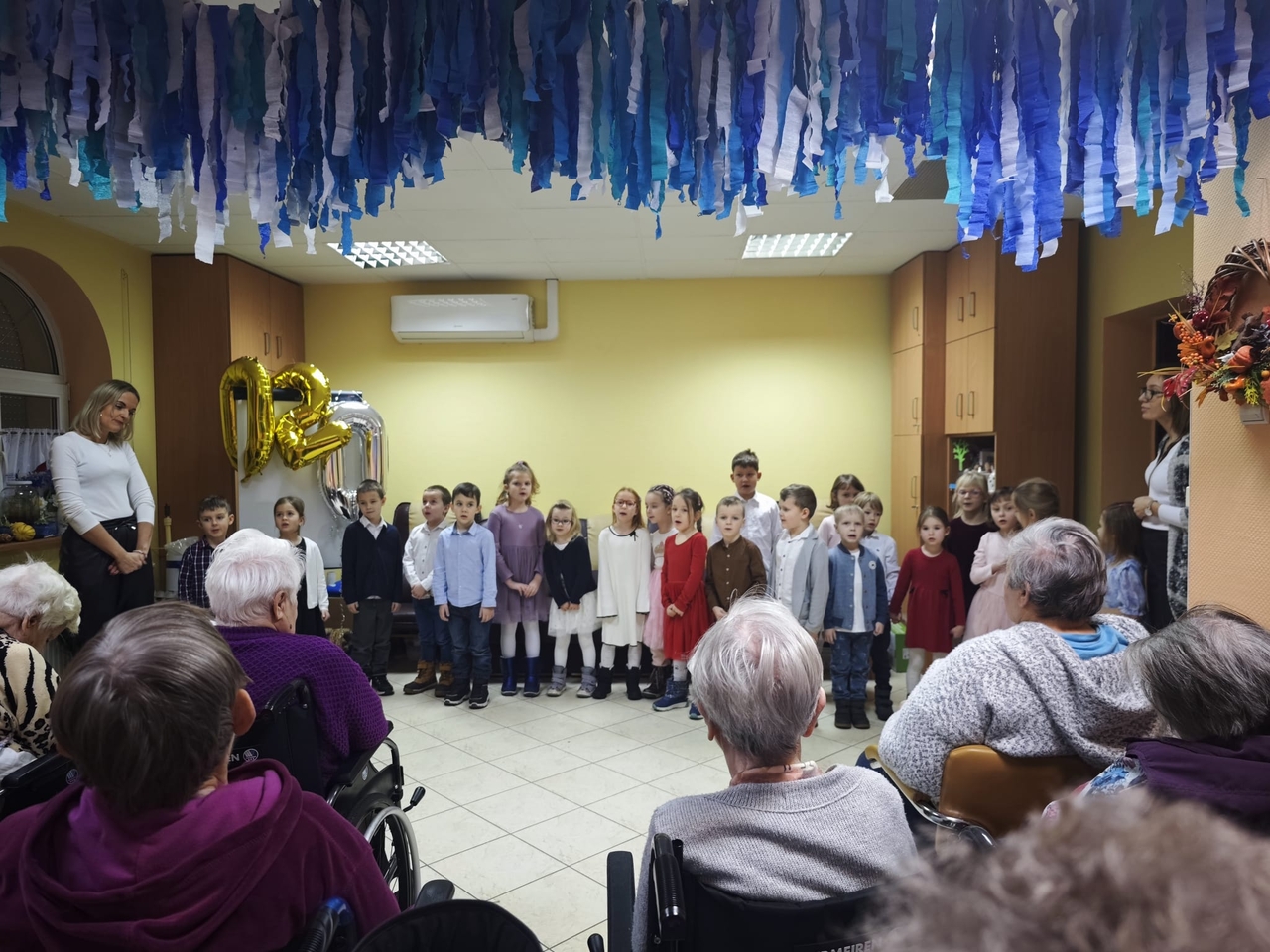 Zawitało do nas przedszkolaki z przedszkola "Kot w butach", które spędziły z naszymi Mieszkańcami miło czas. Dzieci śpiewały kolędy, w które nasi Mieszkańcy z radością się włączyli.